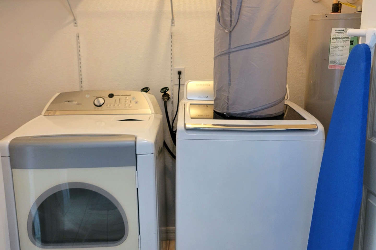 The master suite includes a comfortable queen-size bed and private bathroom. Just down the hall, you’ll find another full bathroom and the second bedroom with a queen-size bed. Also provided are 2 full-size folding beds for additional sleeping spaces.