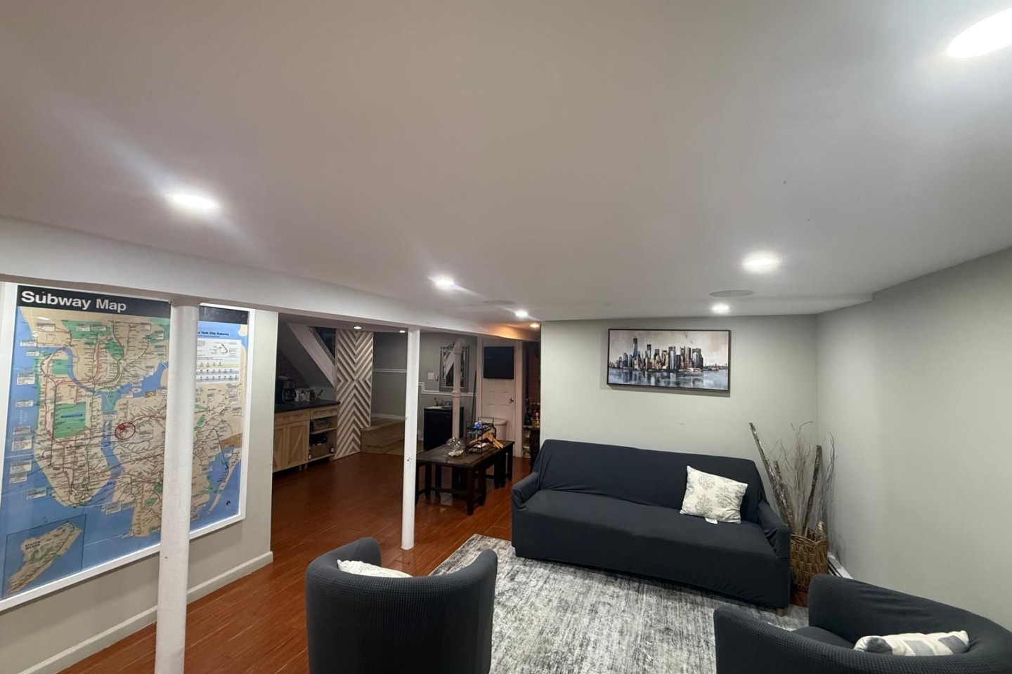 Bus at the corner to take you to Subway station. LIRR 5 minute walk both can be used to get into Manhattan or Long Island (Subway map and instructions are included in welcome packet.)