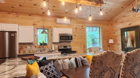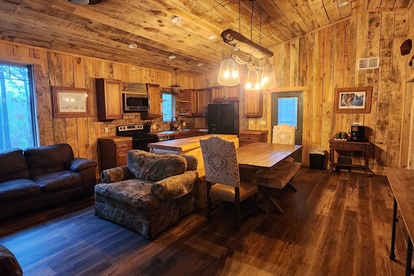 This cabin has the feel of a cabin with the amenities of a new home. It has been designed to spend time with friends and family while enjoying nature as well as comfort.