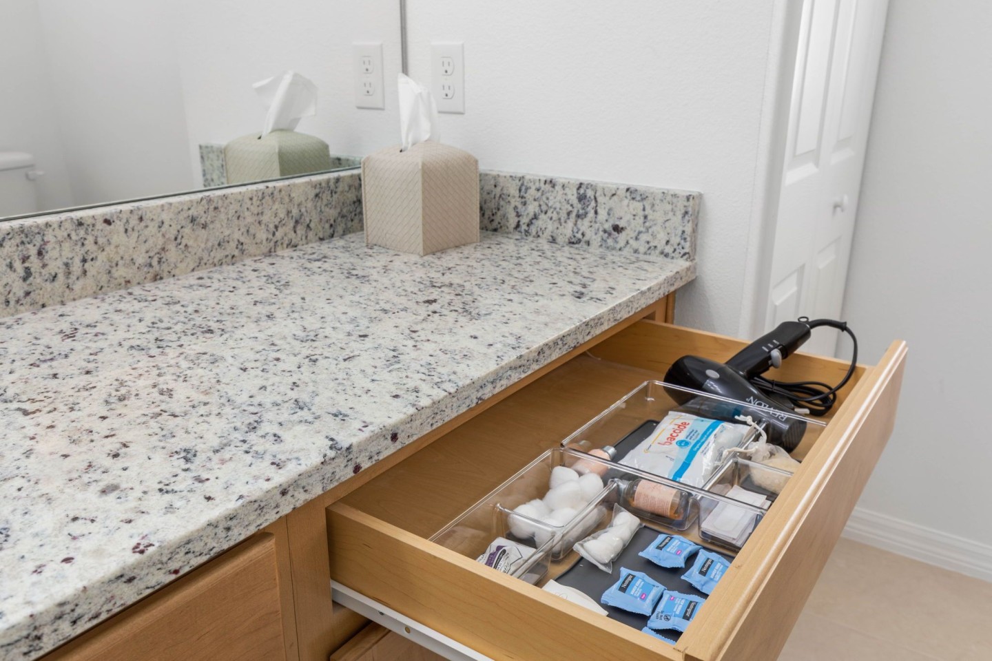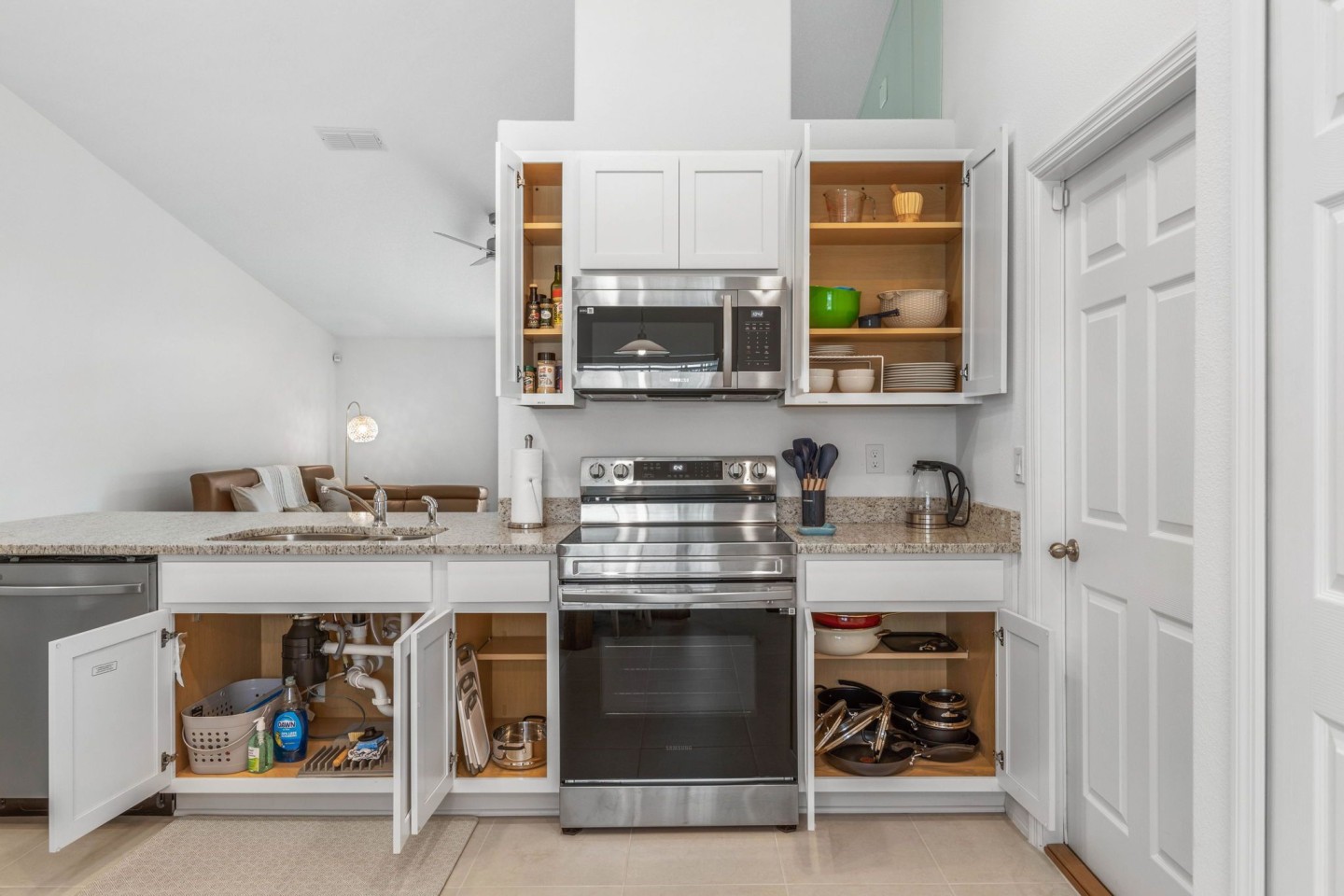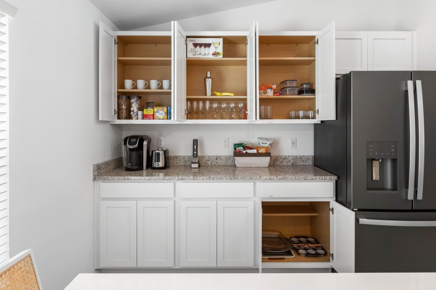 Our fully stocked kitchen was designed with cooks in mind, featuring everything you need to prepare meals with ease. The custom pantry is a standout feature, offering stylish and organized storage.