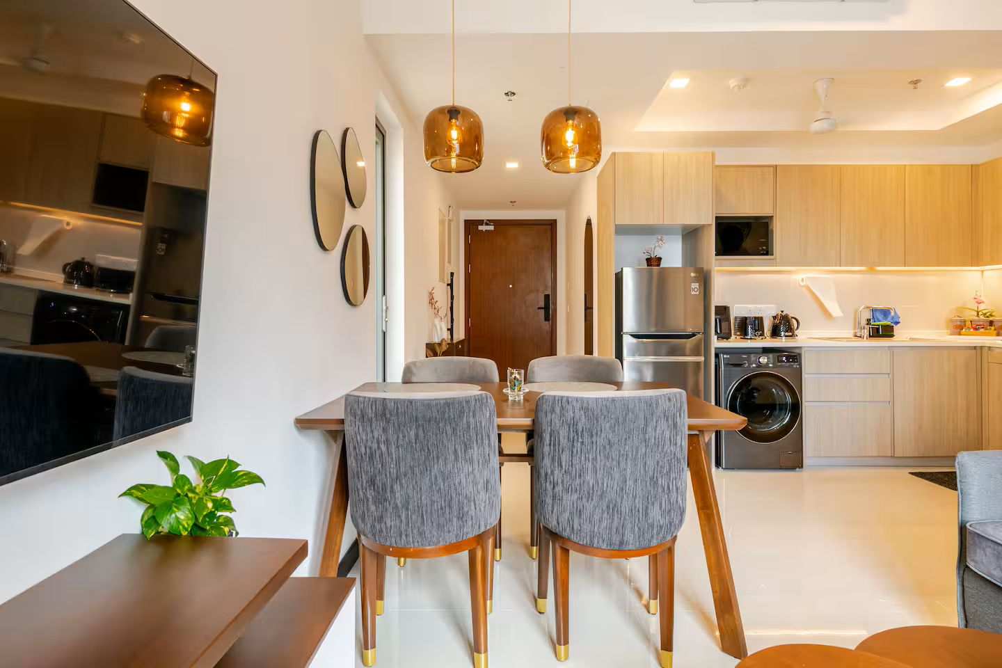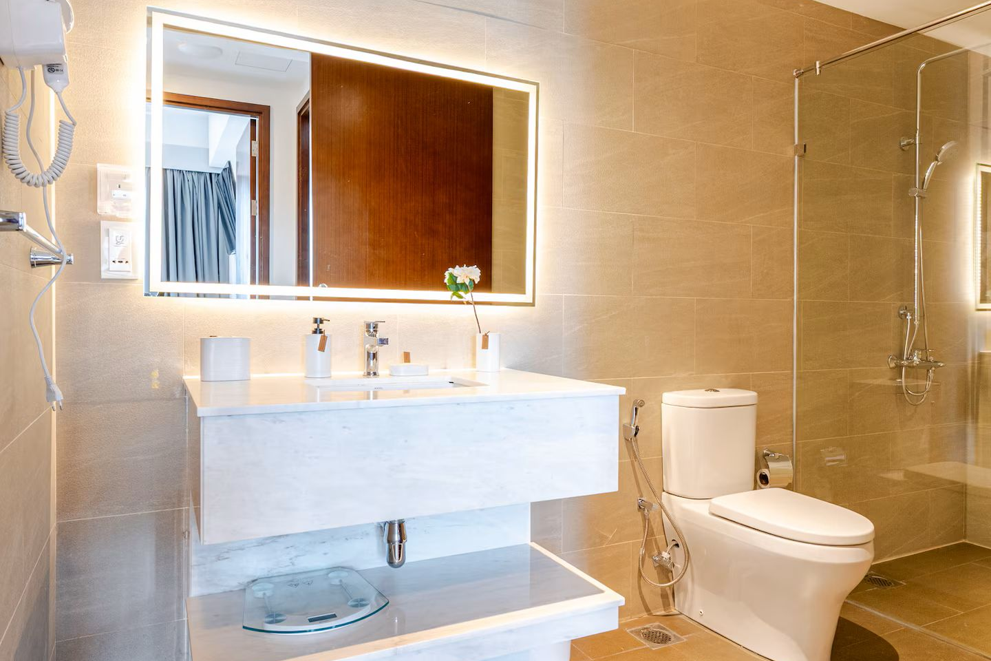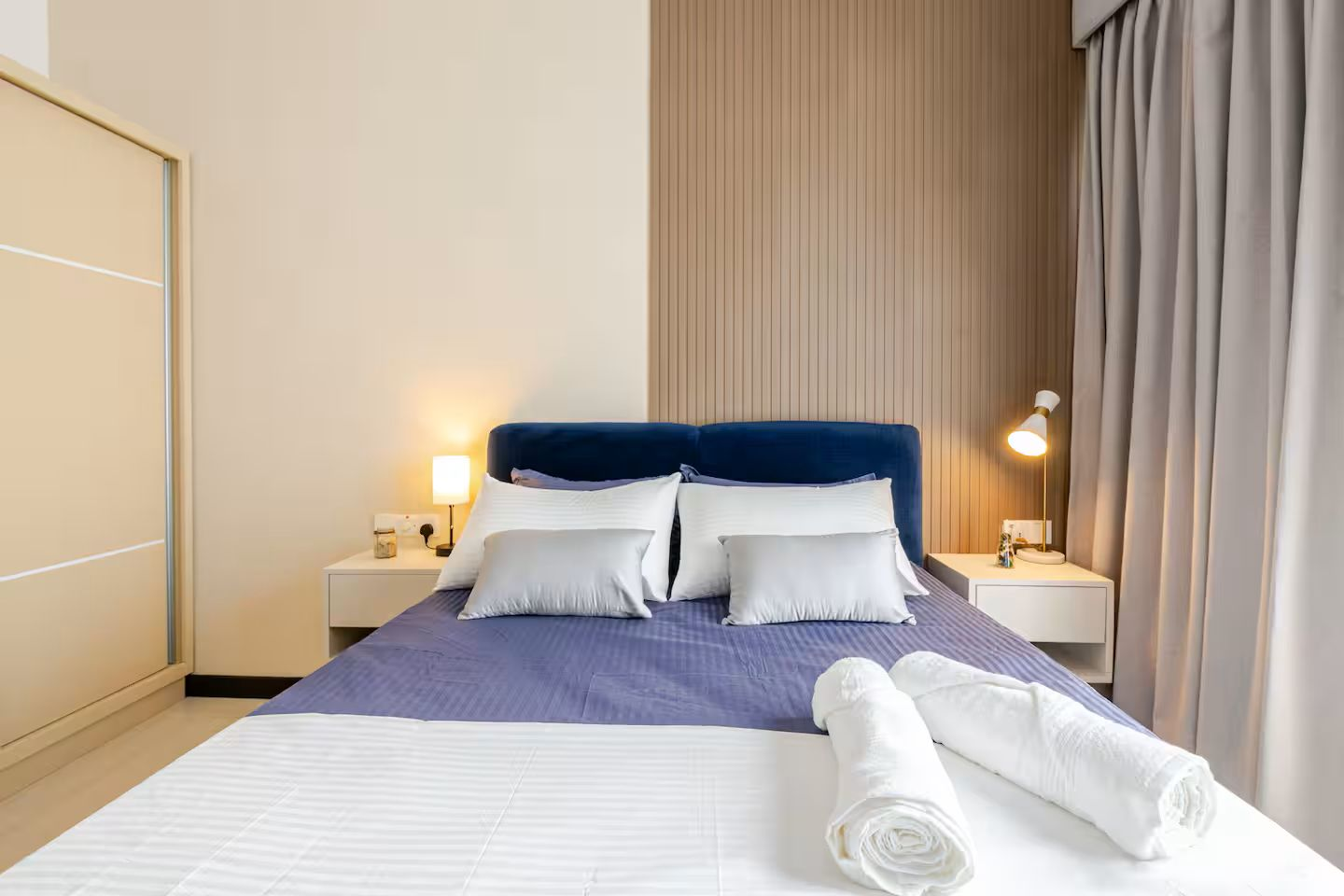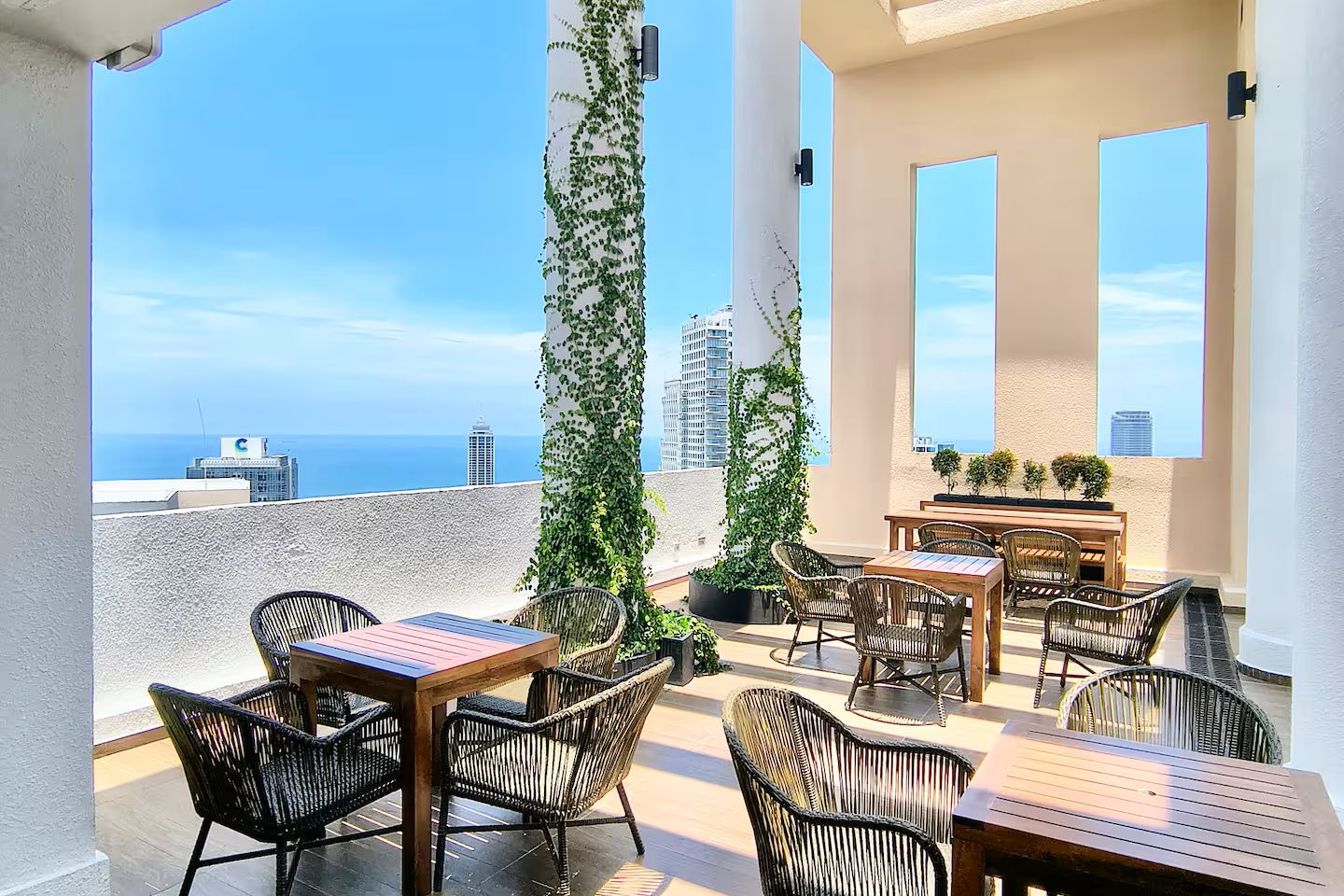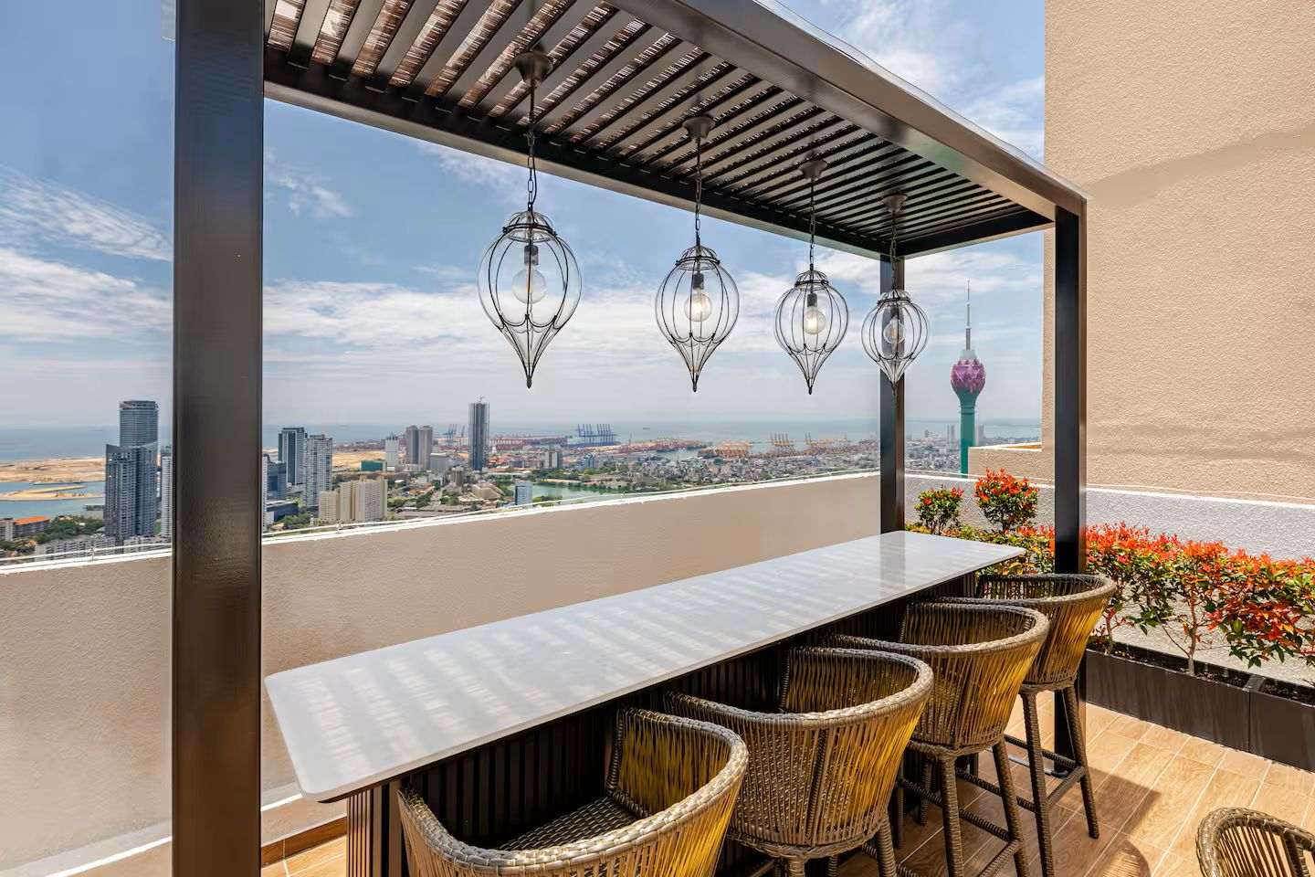 Enjoy a beautifully designed apartment with city views, cozy bedding, a modern bathroom, and a full kitchen. The apartment is on a high floor, giving you both comfort and serenity, while still being just steps away from everything Colombo has to offer.