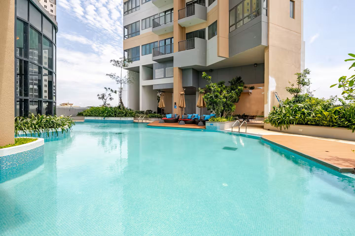 This apartment is located in a secure, modern building with 24/7 security and elevators. You'll also find Pizza Hut, KFC, a supermarket, spa, and other convenient shops just steps from the entrance. (Additional details are available in the welcome guide)
