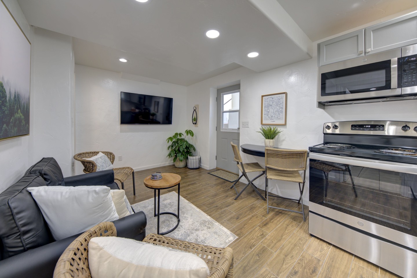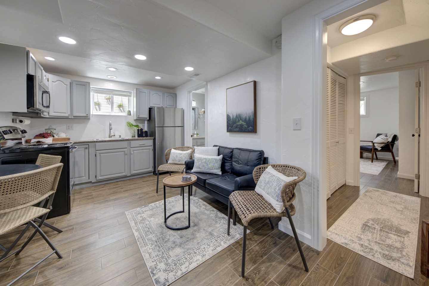 Enjoy a stylish, cozy and bright experience at this centrally-located basement apartment, to relax and put your feet up after enjoying Colorado Springs many adventures. An additional television is in the main living area. Kitchen is equipped for cooking just about anything! Golden Gate is a centrally located separate unit with its own living room, bathroom, kitchen, bedroom, laundry, yard and entrance. Included is a private courtyard for grilling and relaxing.