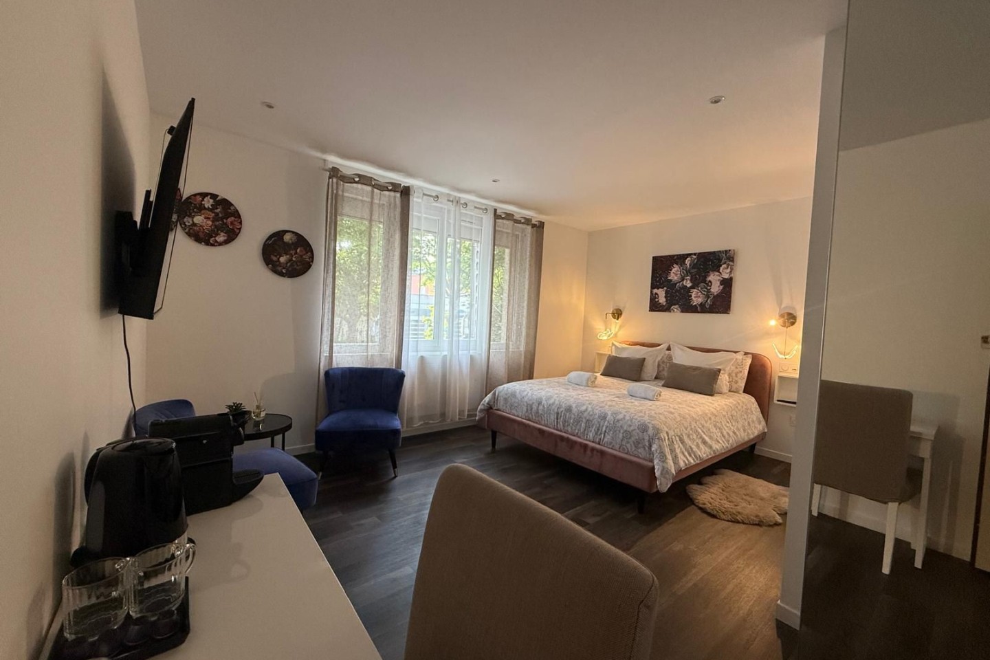 We offer 7 apartments near Paris (Metro line 14), each with a private bathroom. Some apartments are equipped with a kitchen and a washing machine. This small, well-maintained and secure 2-story property is ideal for accommodating groups of up to 23 people.