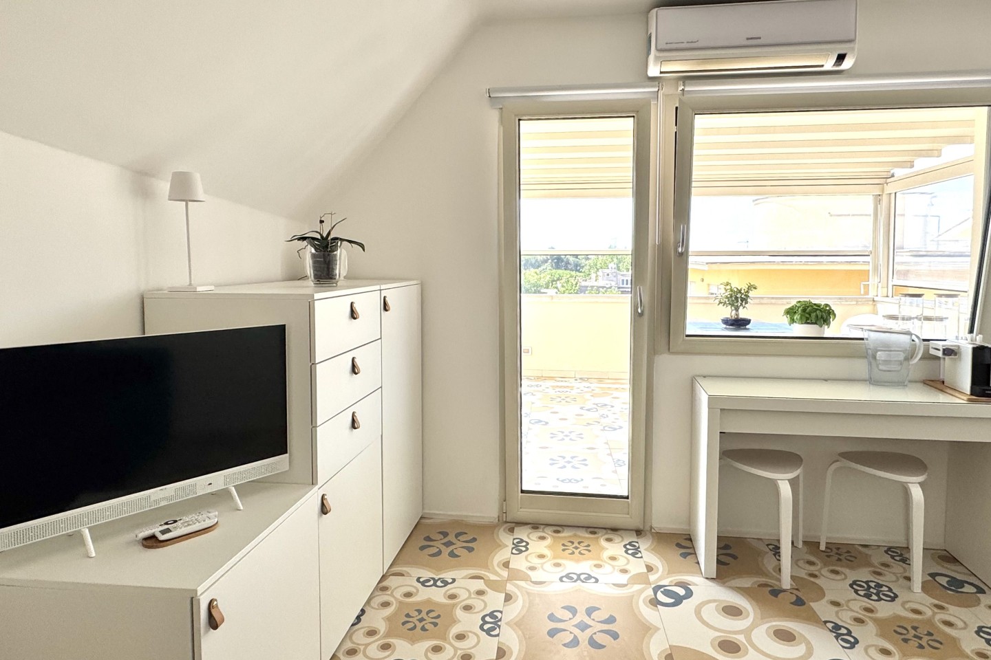 In the heart of Montesacro, a lively historic district of Rome well connected to the main attractions of the city and to the bethel. A small attic with a beautiful panoramic terrace over the city’s roofs.