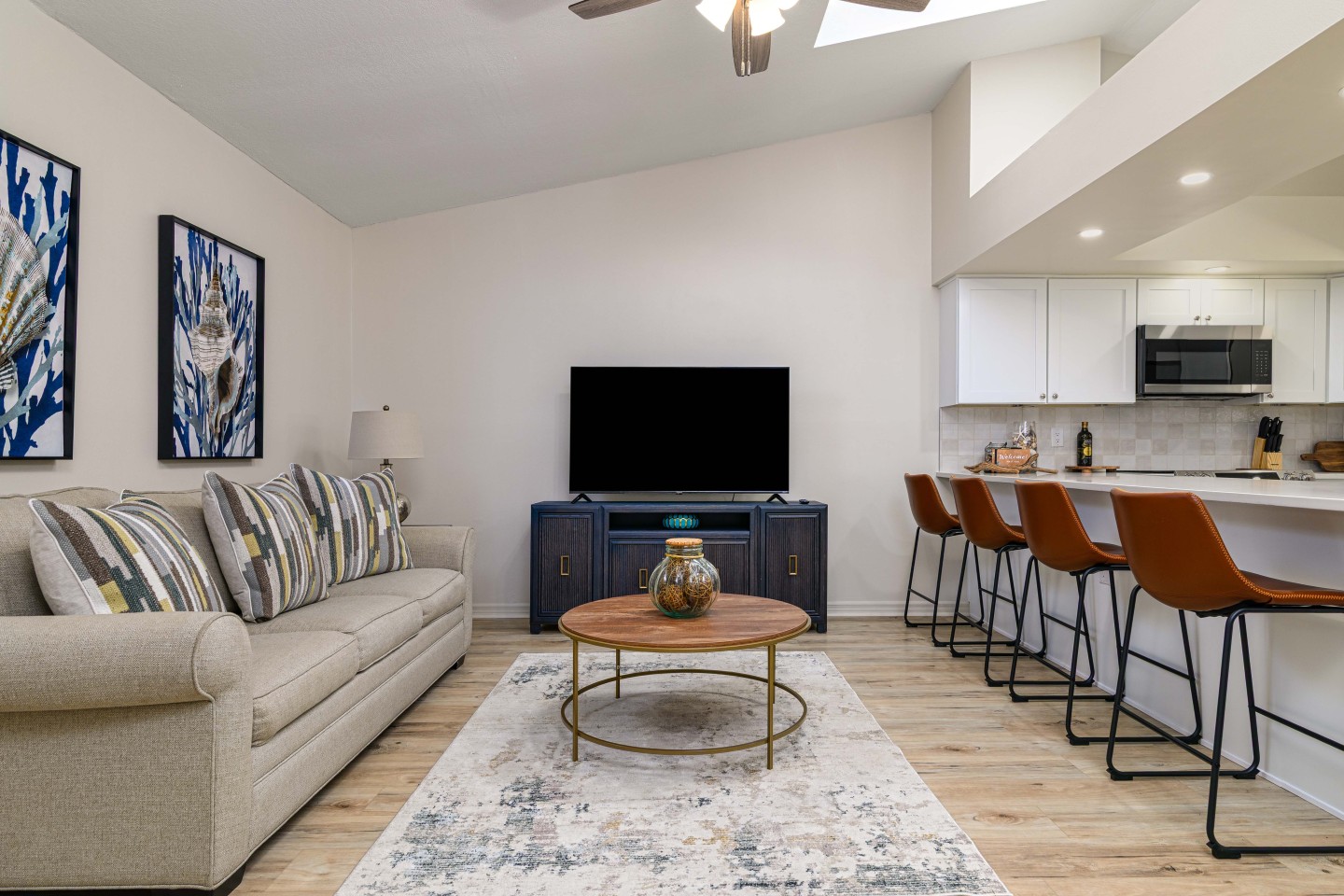 The Coral Reef Retreat stands out for its peaceful setting, stylish renovations, and thoughtful touches. Guests enjoy an extra seating area, a high-definition smart TV, and a private fenced backyard with a patio and grill—perfect for relaxing. Located just minutes from the beach, the European Village, and the Bible Educational Center, this retreat offers both comfort and convenience in one of Palm Coast’s most desirable neighborhoods.
