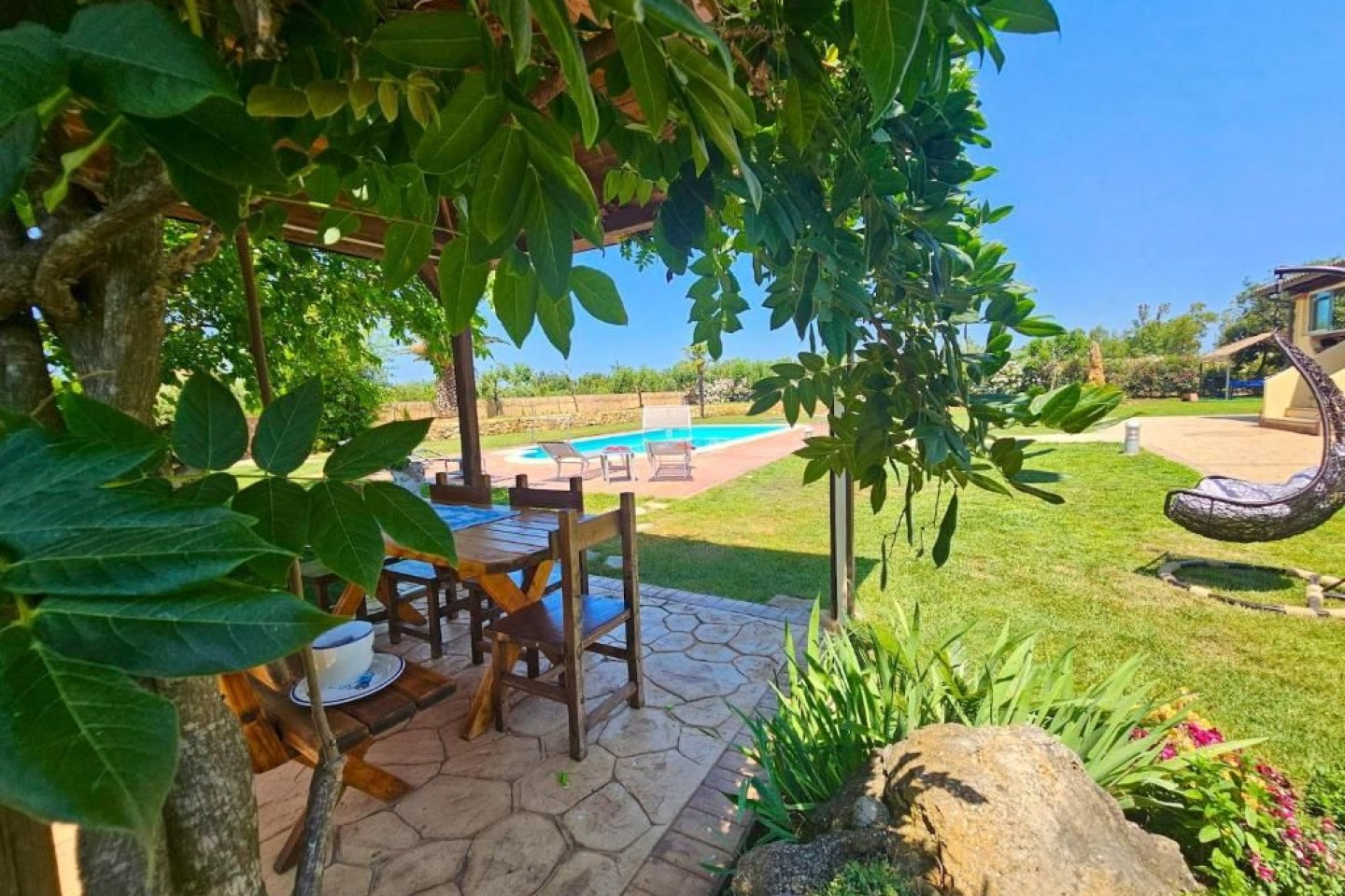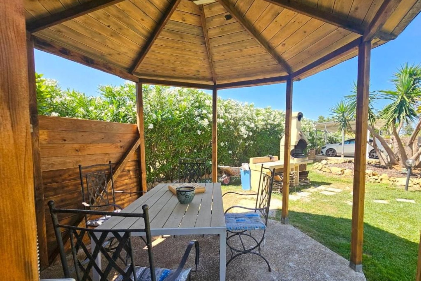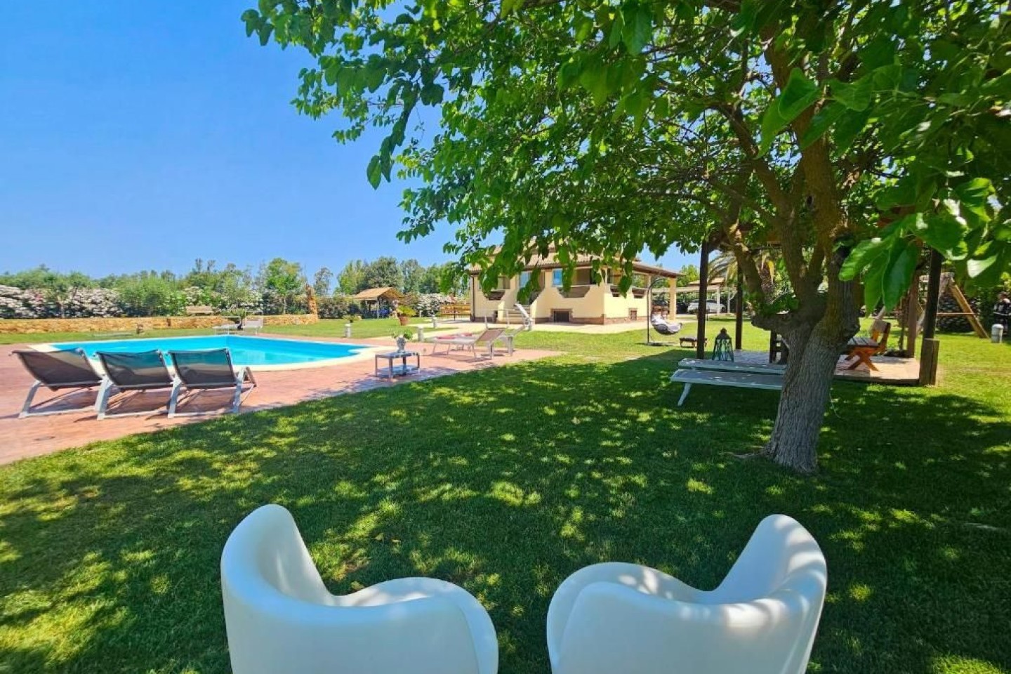 Outdoor fun and wellness The garden is a true oasis of peace with a private swimming pool (10m x 5m) where the whole family can relax and enjoy themselves, with a child-friendly area. Around the pool you will find sun loungers, parasols and a covered veranda with barbecue, ideal for al fresco dining. The large gazebo next to the pool is the perfect place to enjoy the garden with friends and family. Equipped areas for families To ensure the safety of children. This makes Villa le Palme perfect for families who want a relaxed and safe environment. We also provide bicycles free.