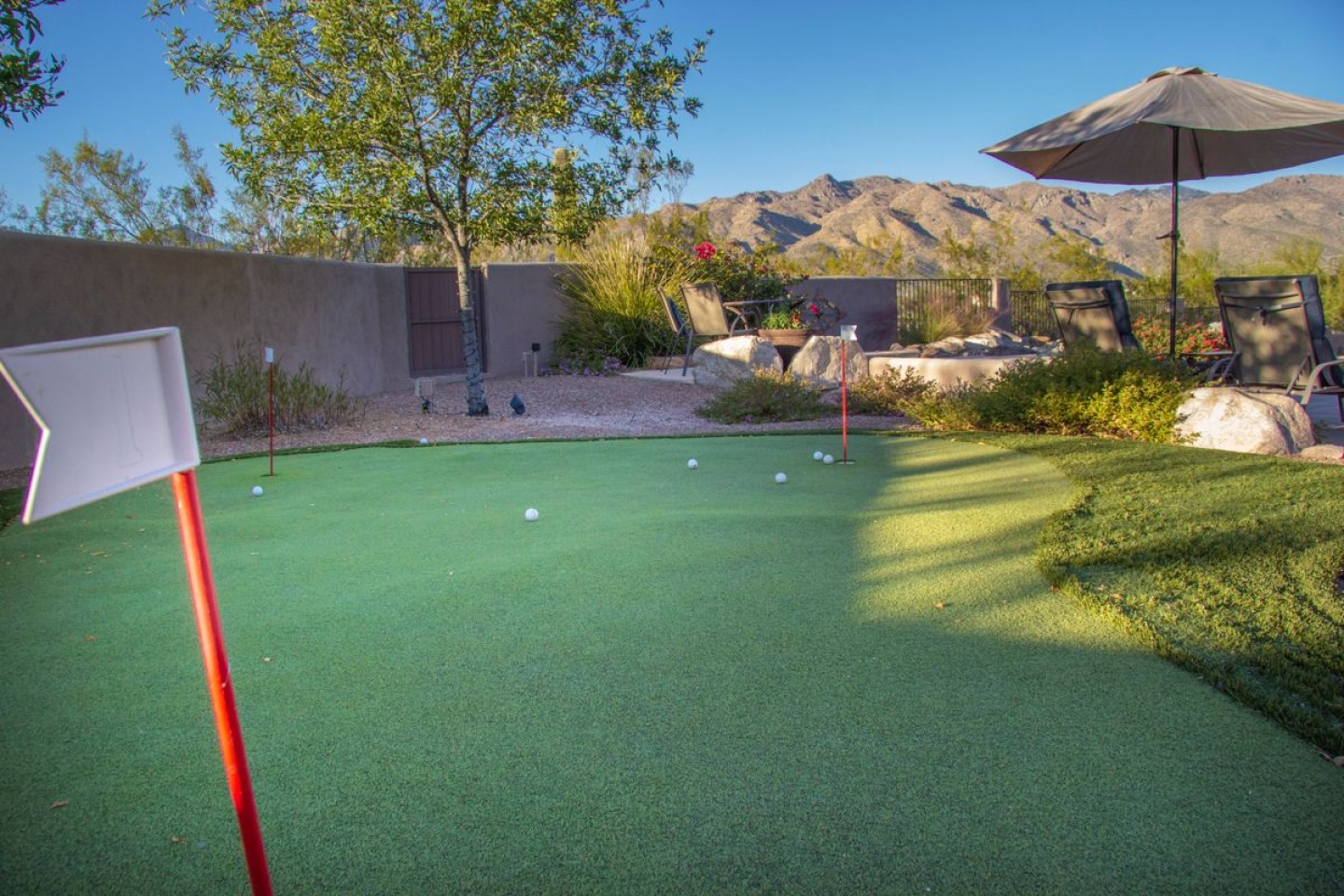 Thirty five hundred square feet of Southwest style luxury. Two covered porches allow you to enjoy Tucson's outdoor lifestyle, beautiful sunrises, striking sunsets, and alfresco dining. You will enjoy a pool, spa, outdoor kitchen, outdoor fireplace, and putting green. There is even a little hiking trail on the property.