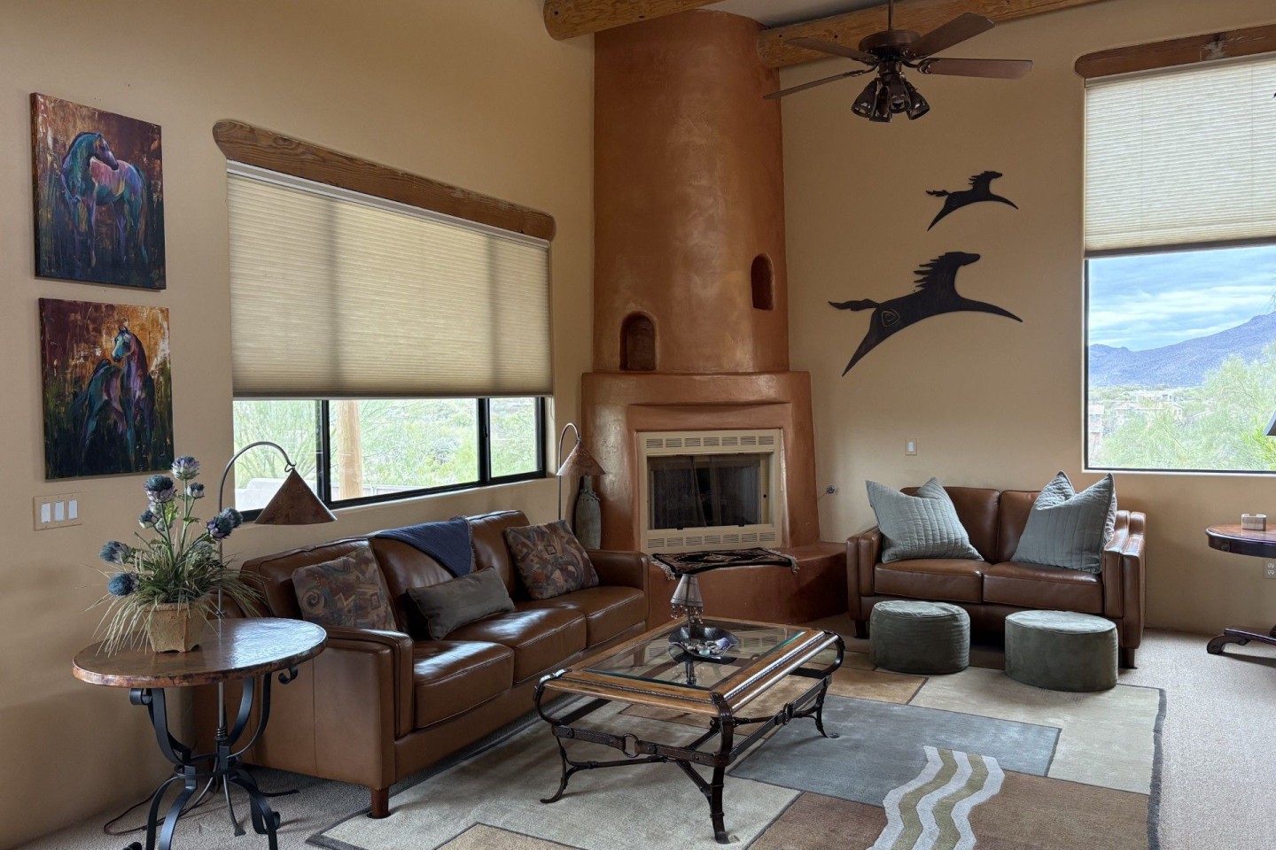 Bob & Linda Barnes invite you to vacation in style at our Desert Vista Oasis. Front row access to the Sonoran Desert's natural, breathtaking beauty. Experience the best of Tucson from the comfort of this adobe-style, single level, four bedroom, three bath home.