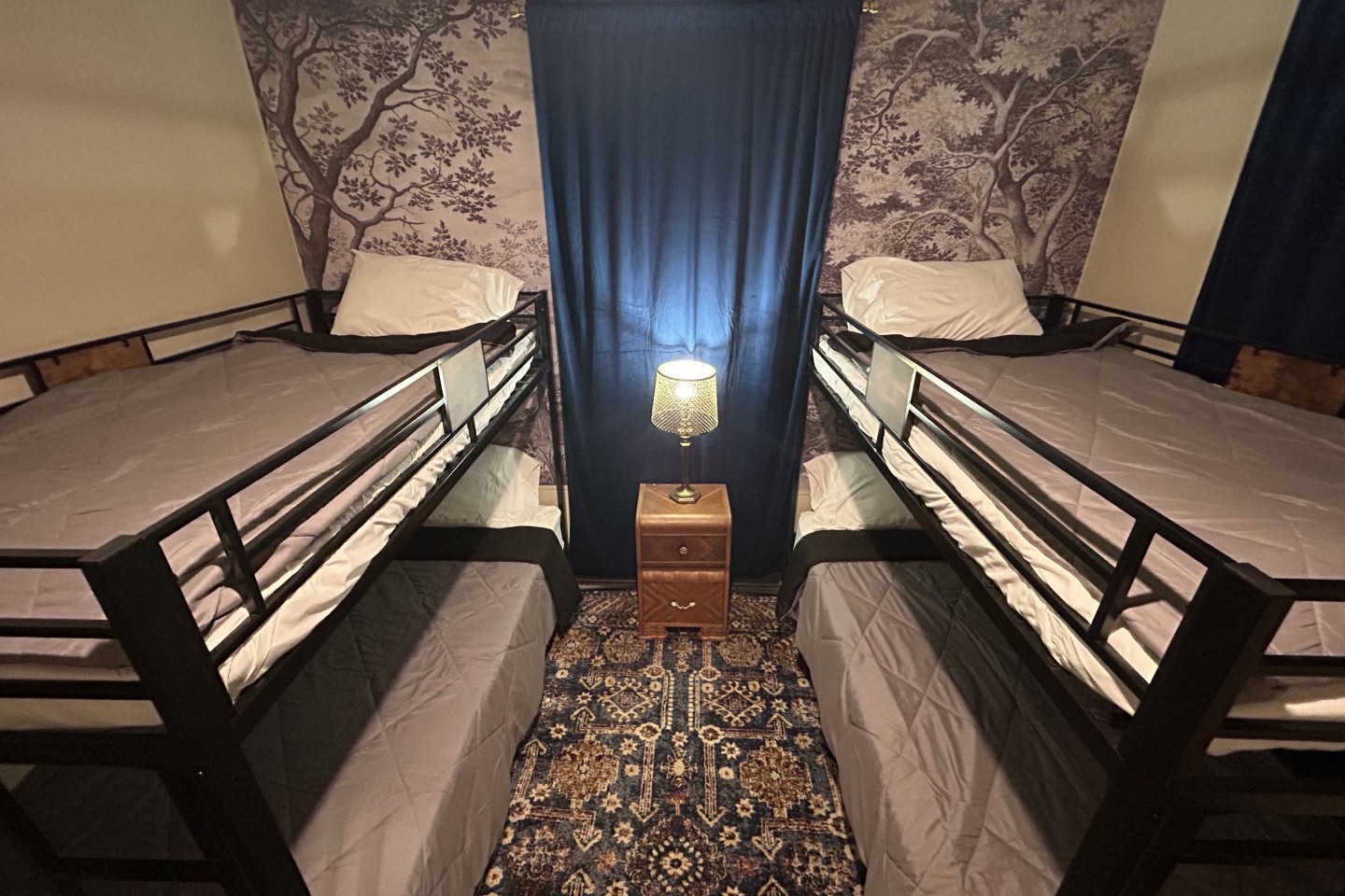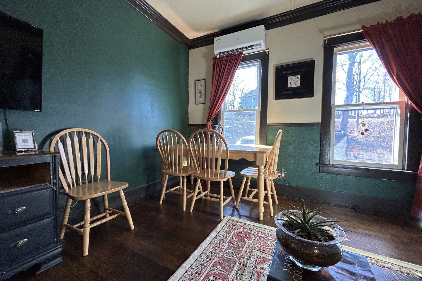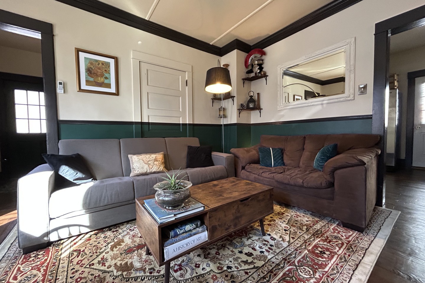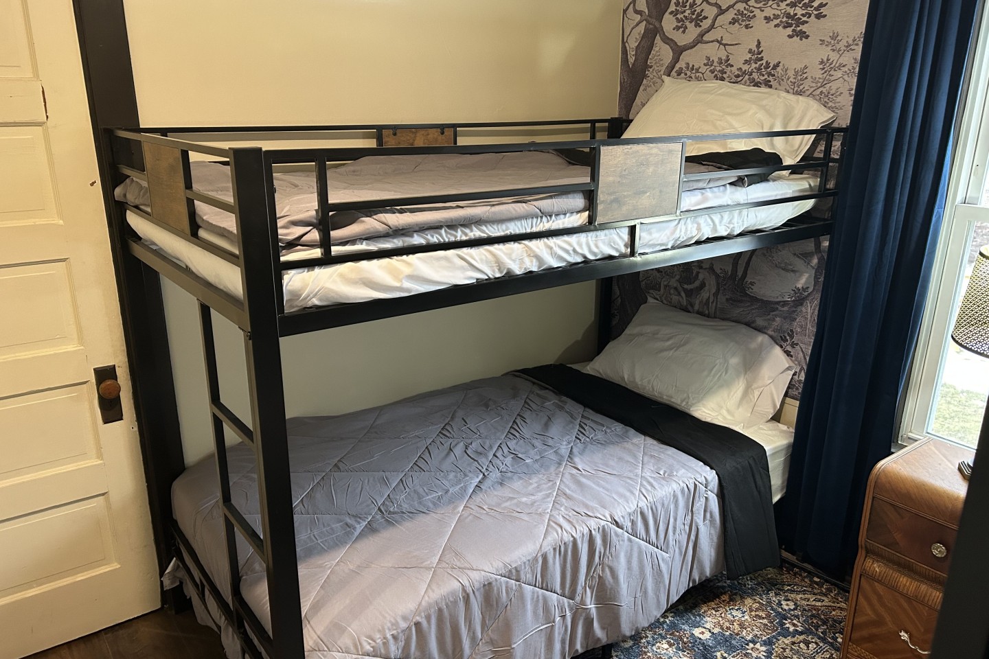 Restored and renovated Victorian Manor with three bedrooms and one and a half baths. This 1917 house sleeps 10 comfortably (12 is tight) The Duchess Room has a queen bed and a closet, sleeps two to three. The Duke Room is a small room with a full/double bed, sleeps two. The Prince Room has two bunk beds and a bed roll that can be added to sleep five. The large living room, with a pull out and a couch, can sleep an additional three.