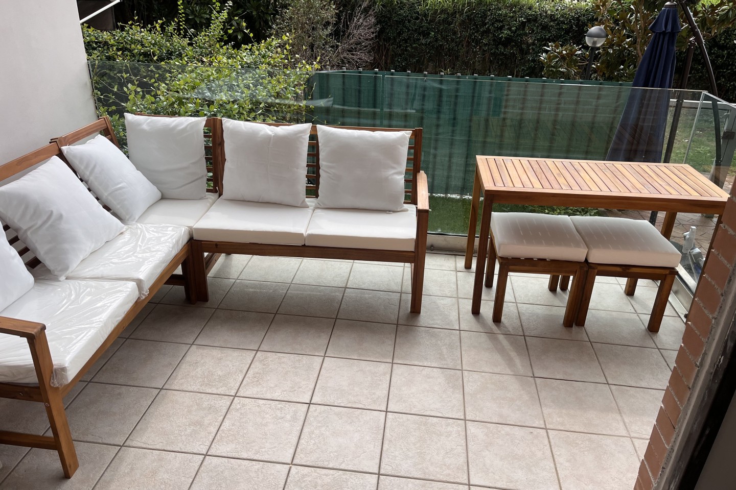 45-square-meter apartment with a small garden, a nice balcony, and an indoor parking space (if available) or outdoor parking just a few meters away, always accessible. A very large park is located 100 meters from the property, and public transportation is available for easy access to the rest of Rome. Cool in the summer, with sunlight in the morning and early afternoon.