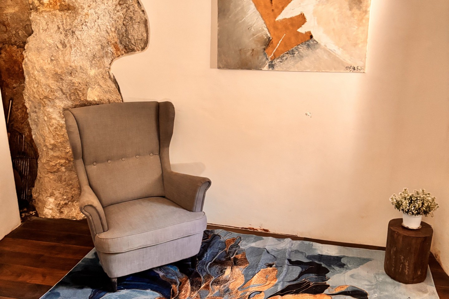 Scavata nella roccia, con ambienti unici, camino, travi in legno e un' atmosfera senza tempo. Appena entrati scoprirete la bellezza di un soggiorno confortevole dotato di camino e angolo cottura, salendo la scala troverete una camera da letto e bagno tutto in pietra