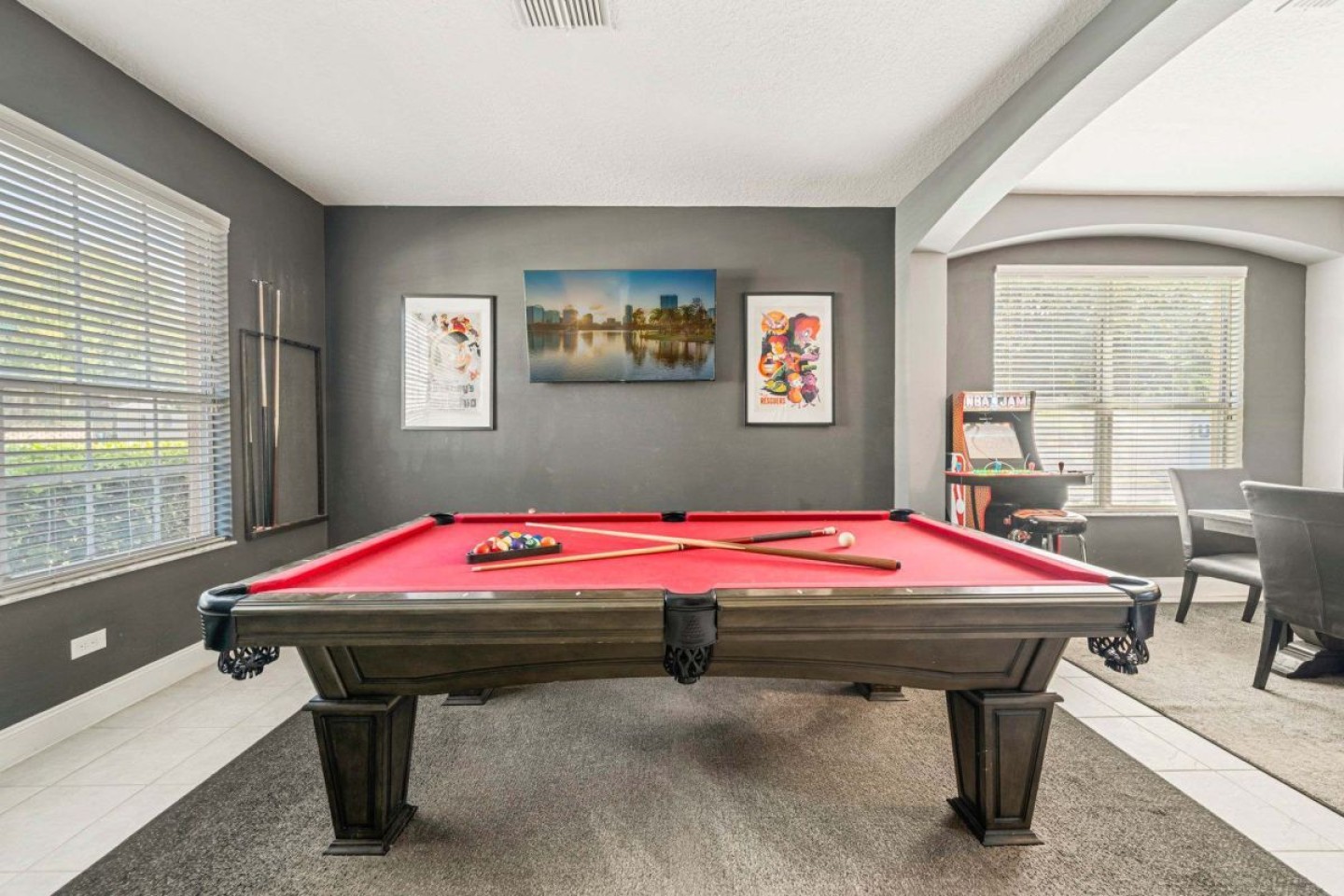 The moment you step inside, the grand entryway sets the stage with a pool table, pub seating, a 55-inch