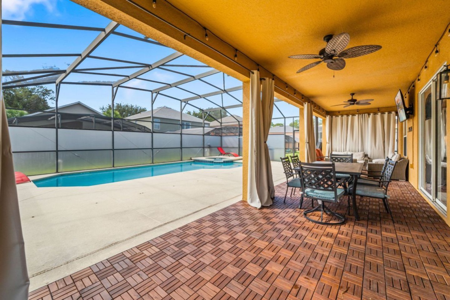 Welcome to your Orlando home-away-from-home, where elegance and entertainment come together in perfect balance. Nestled in the gated Emerald Island Resort, just minutes from the area’s world-famous theme parks, this seven-bedroom, five-and-a-half-bath estate offers the space, style, and amenities to delight guests of all ages.
