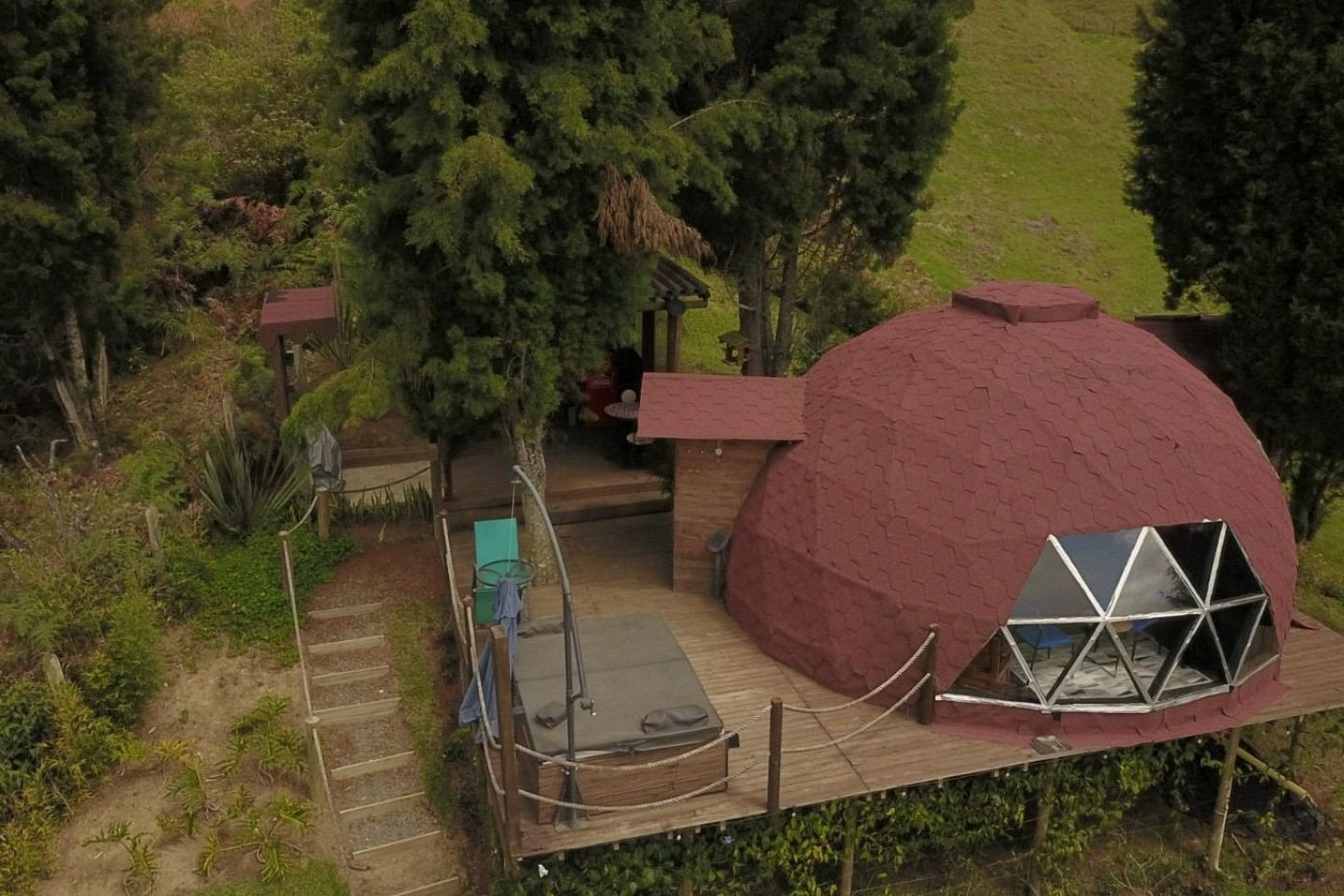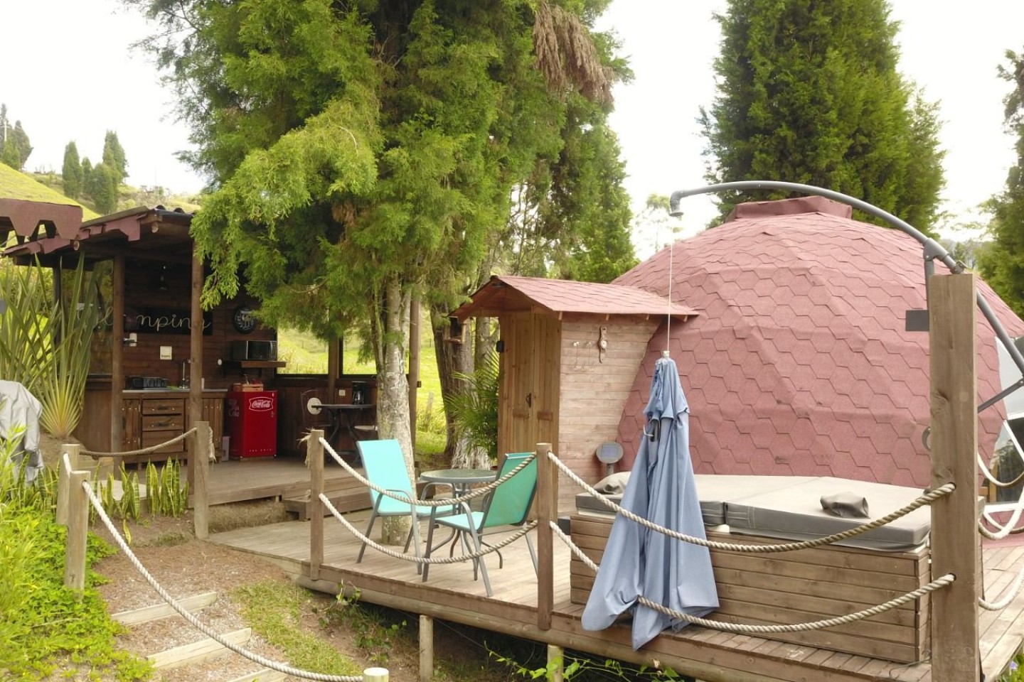 Glamping VIsta 360 degrees is a luxurious, highly rated camping experience located in the natural surroundings of Guarne, Colombia, near Medellin Colombia, only 6.8 miles from Jose Maria Cordova international airport. This evening spot offers panoramic Mountain Views, private hot tub, a kitchenette, free WiFi, perfect for peaceful nature gateway .