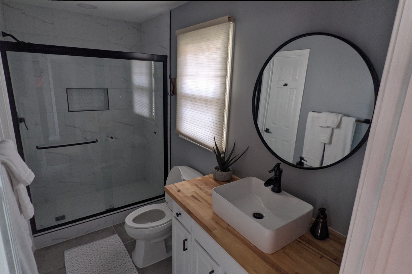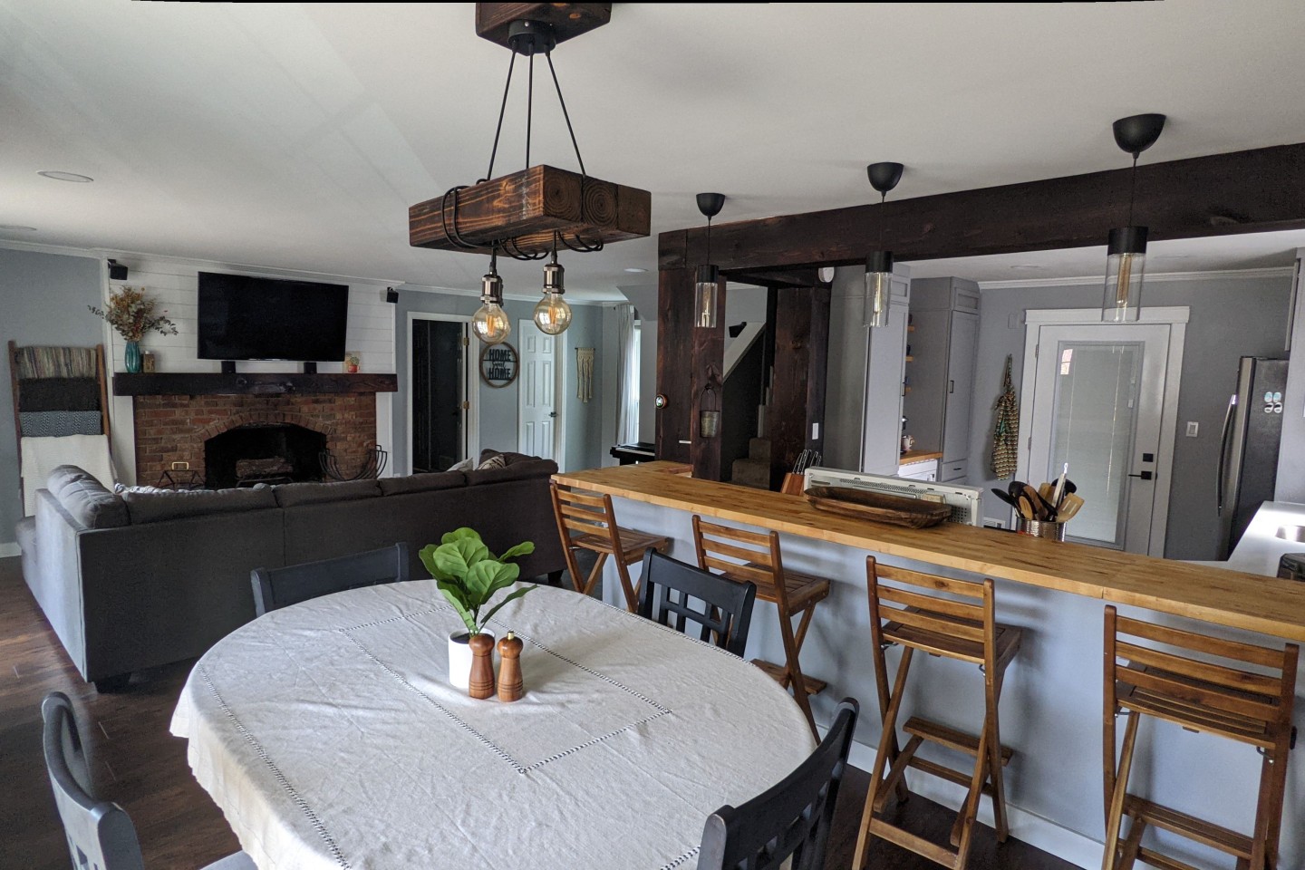 On a quiet dead-end street, offering privacy, a large wooded backyard, and a cozy fire pit—perfect for unwinding after a day on the water.