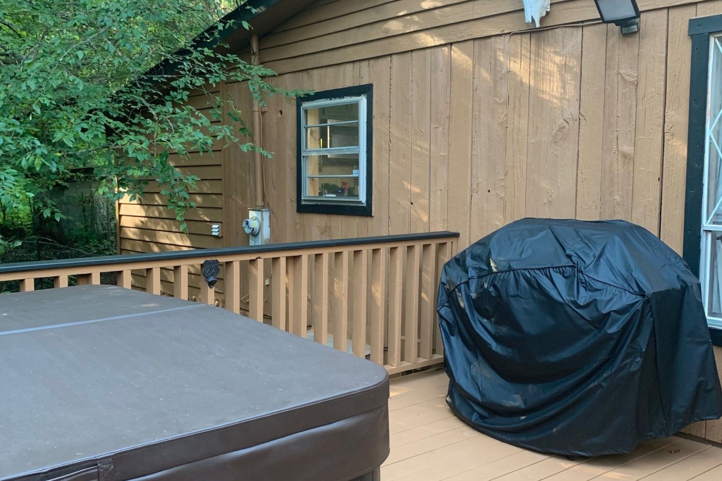 Enjoy this modern Tennessee style cabin centrally-located in Sevierville. 15 Min away from Pigeon Forge and 20 Min away from Gatlinburg. This Cabin features its own wrap around deck with hot tub, seating area and BBQ, perfectly located nestled in a quiet area with plenty of forest around. The inside of the cabin features a beautiful modern style kitchen with buffet table, stainless steel appliances, a cooking supplies to prepare a hearty meal. The use of a 4x4 vehicle is recommended.