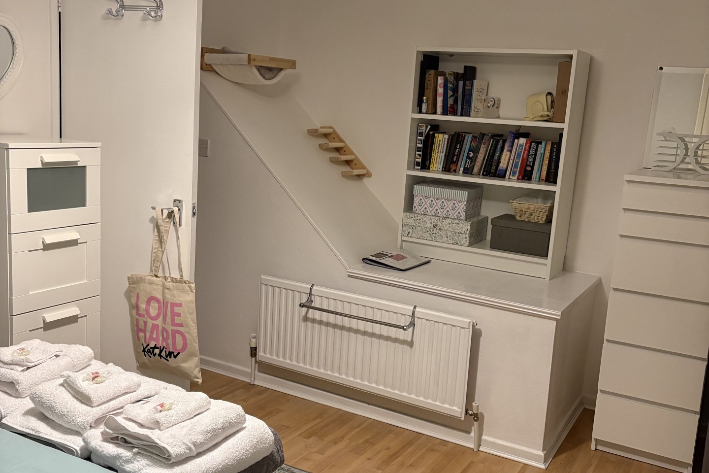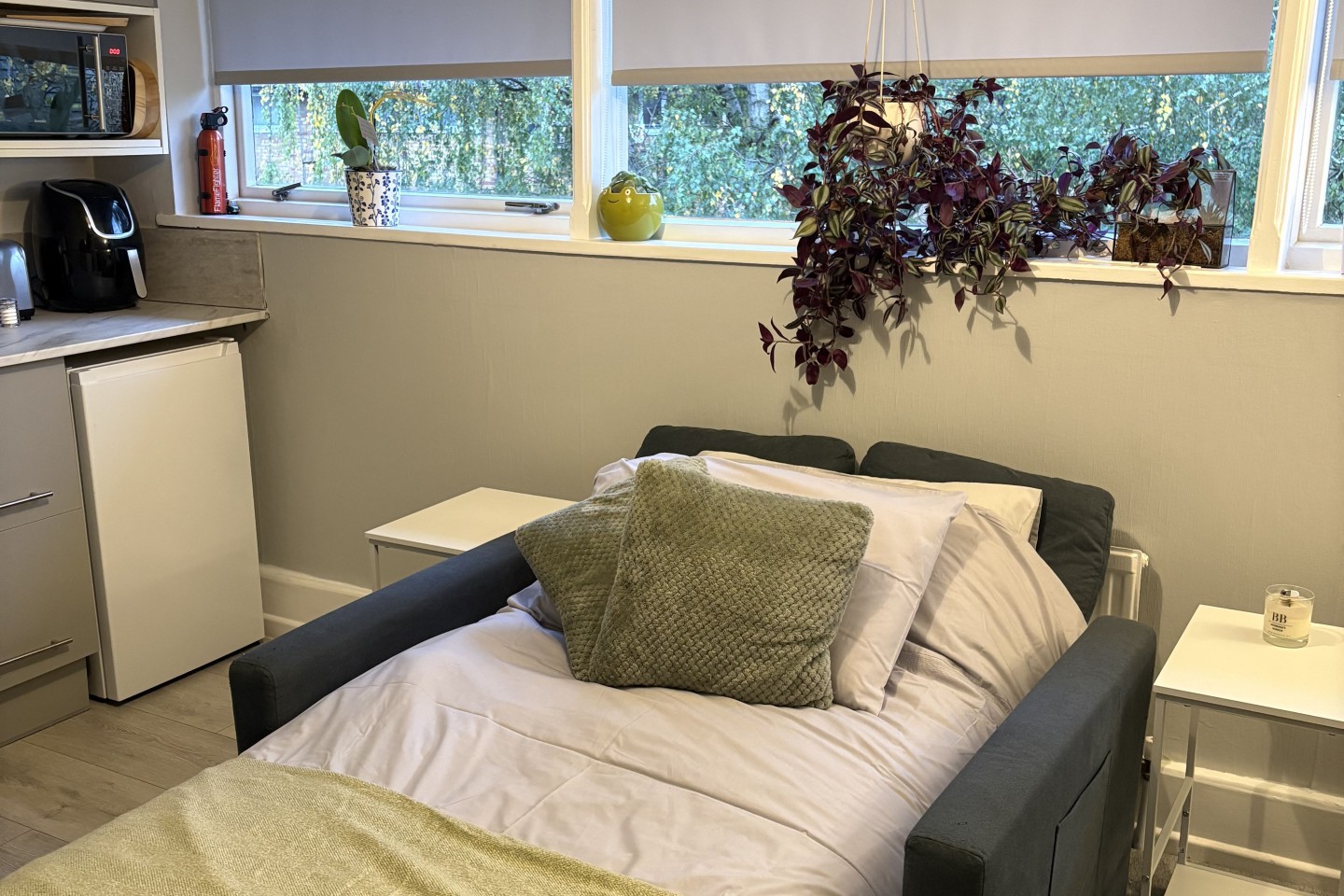 The top floor of our 3 story house has been converted into a cute 1 bedroom flat. The flat is accessible by its own door.