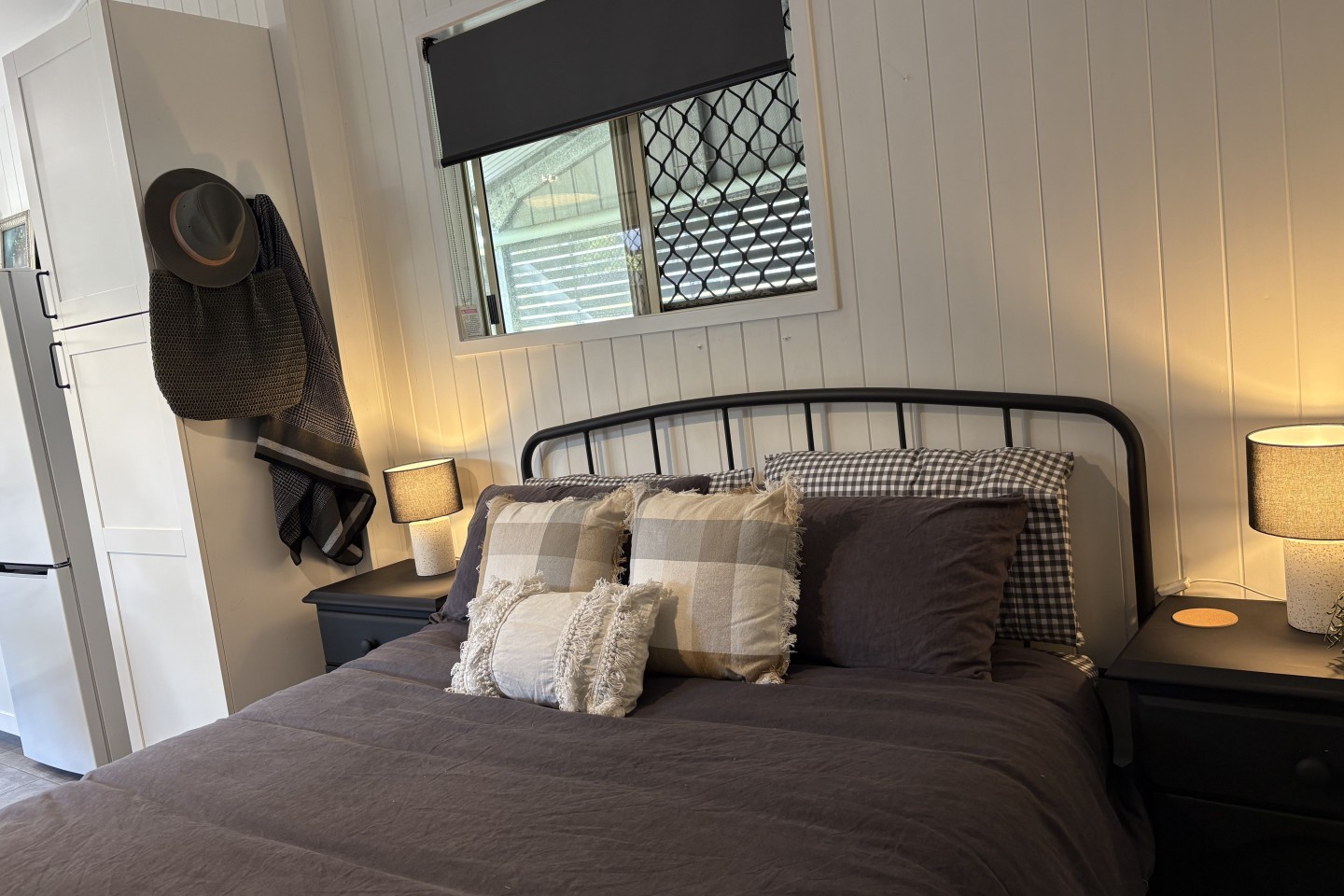 Inside, you’ll find a comfy queen bed (all linen supplied), a fully equipped kitchen, and a private bathroom fitted with a modern composting toilet — clean, odour-free, eco-friendly, and simple to use (we’ll leave easy instructions, just in case!).