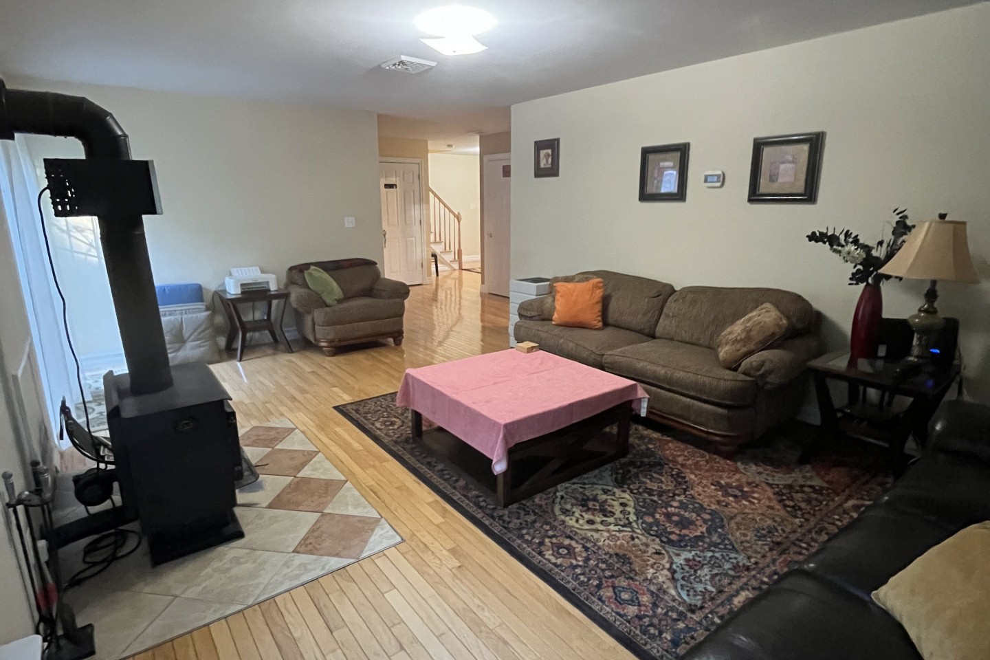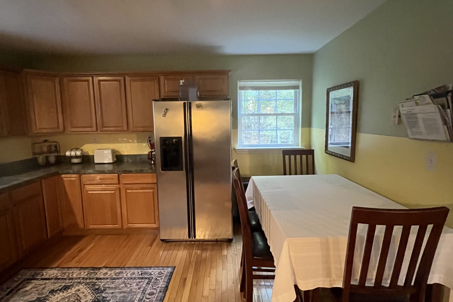This is a beautiful home in the woods, we take pride in maintaining it very clean. We do all the housekeeping ourselves because we are very particular about detail cleaning. You can wake up in the morning and be visited by dears, wild turkeys, and all the adorable creatures. It’s surrounded by beautiful trees, very welcoming. The house has a huge living room, kitchen and a dining room you can enjoy with your family or whoever you’re traveling with.