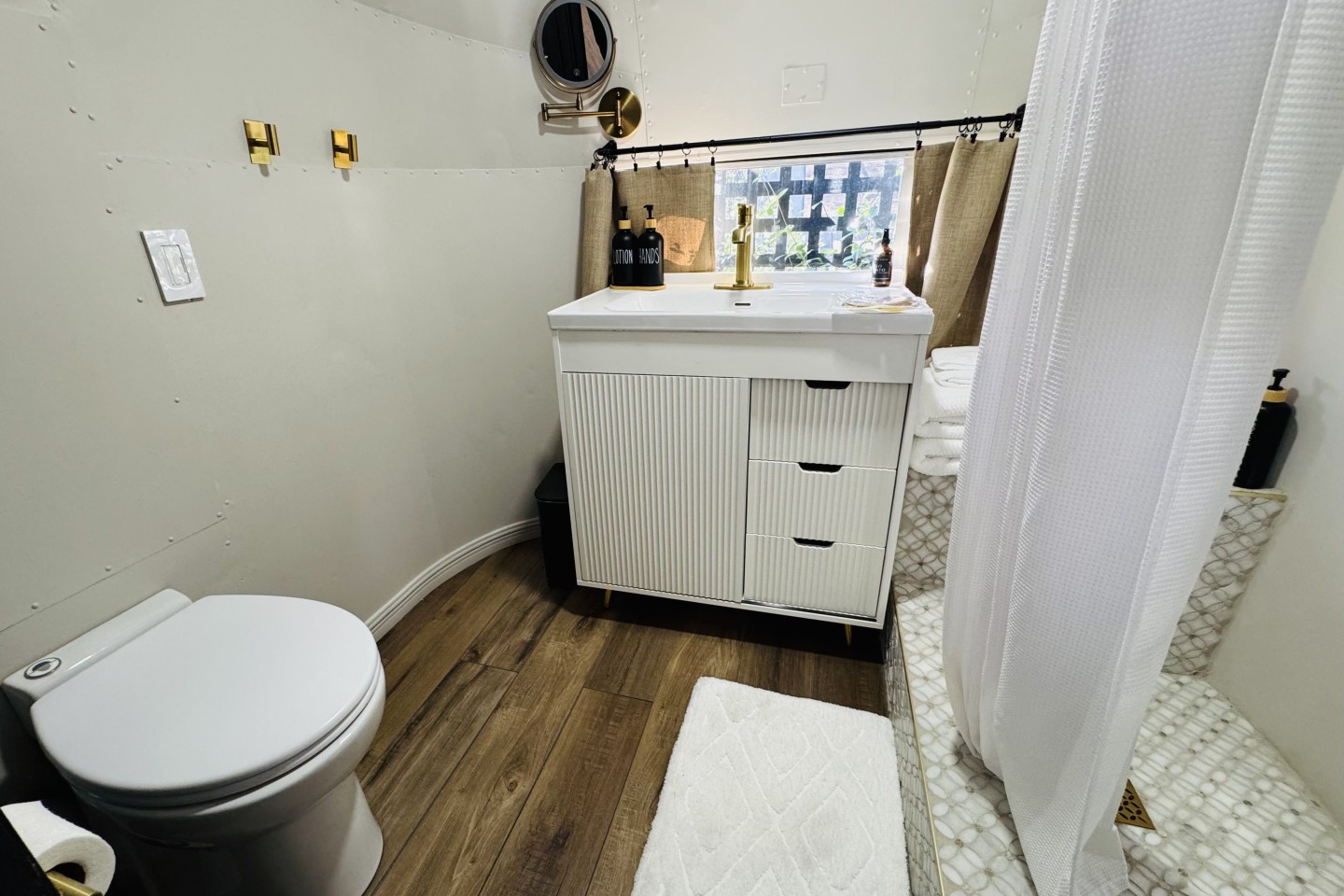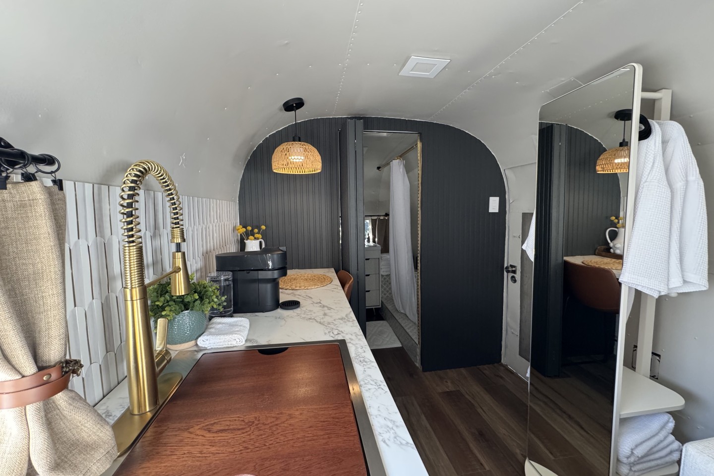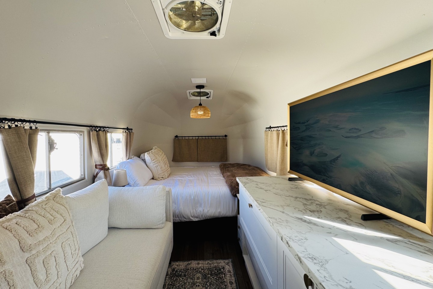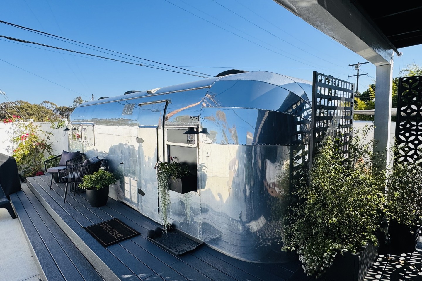 Step into our restored Airstream, perfect for a romantic getaway or solo retreat. Close to all major attractions and airport. Snuggle up on the queen-sized bed or binge-watch your fave shows on the 50" smart TV. This private, well-appointed haven features a fully-equipped kitchenette, plush decor, and ample natural light. Unwind in your own private living space, complete with all the comforts of home. Enjoy starry nights by the outdoor fireplace, or relax in the cozy outdoor seating are