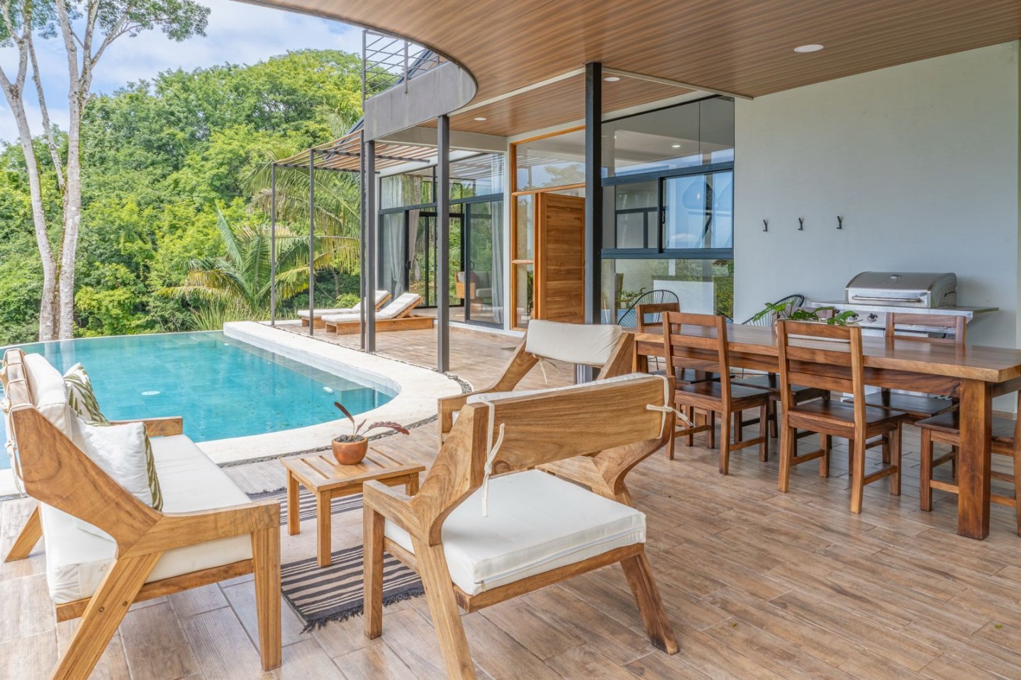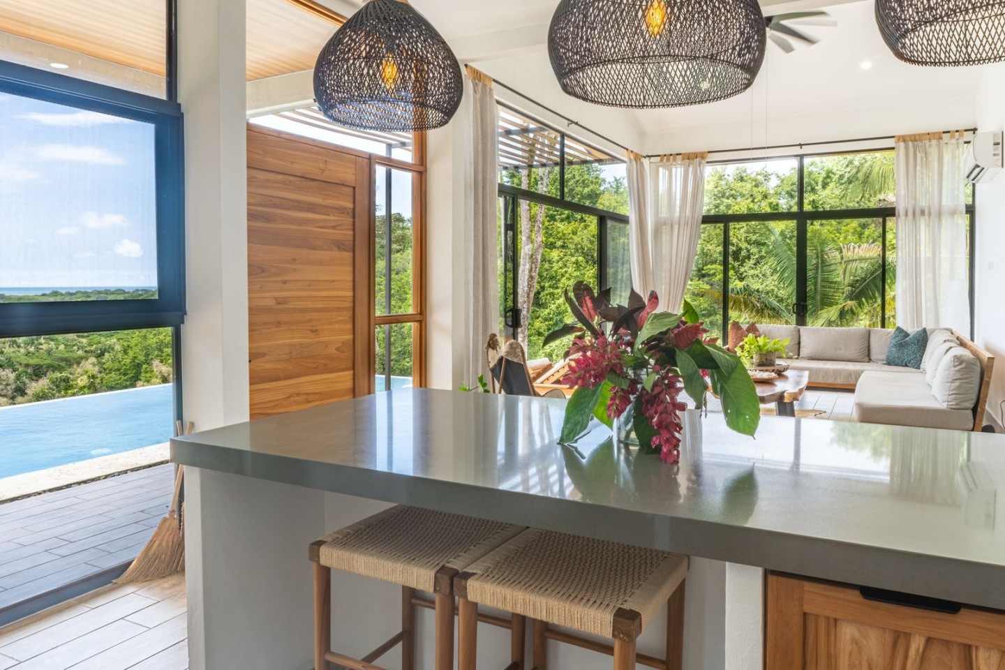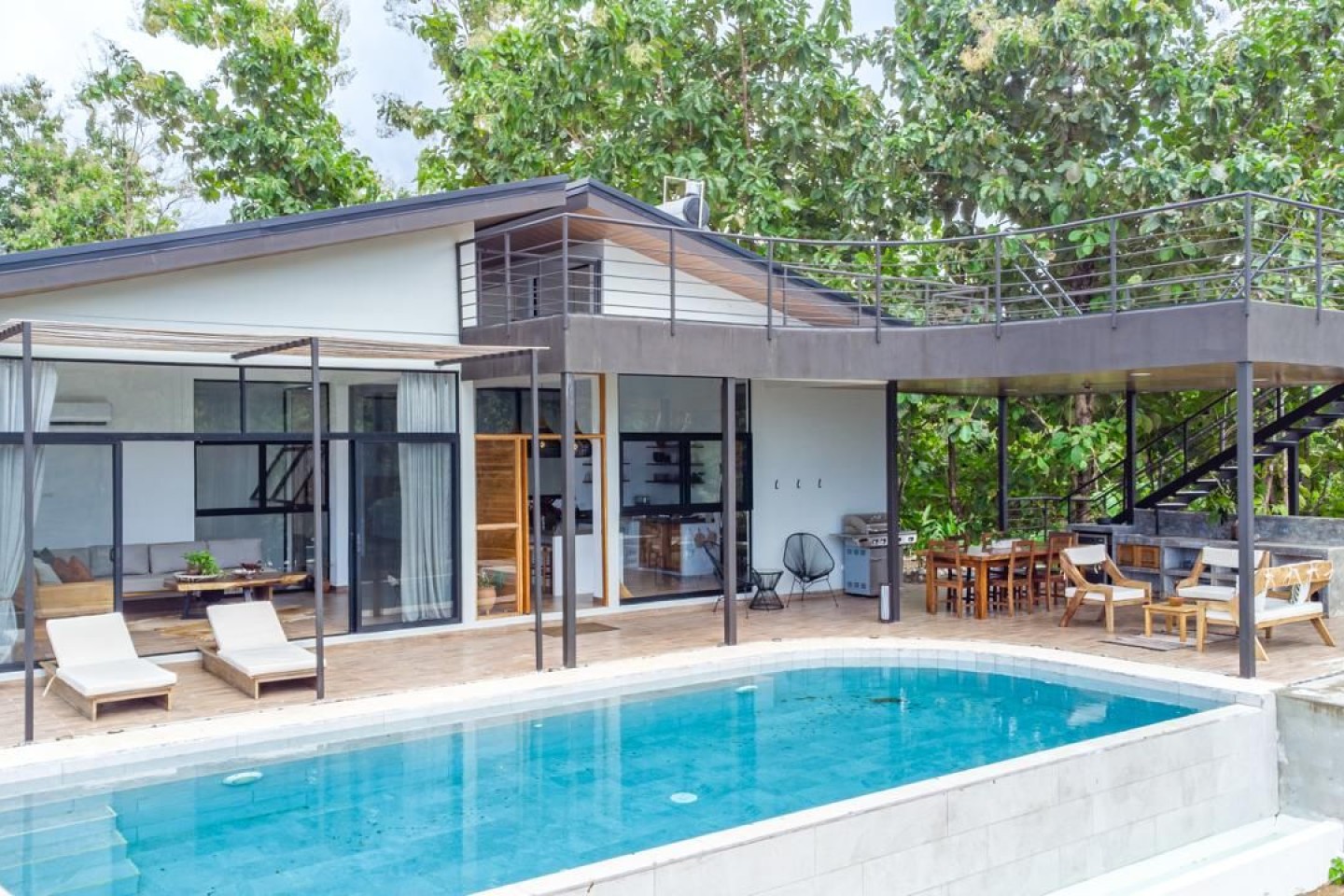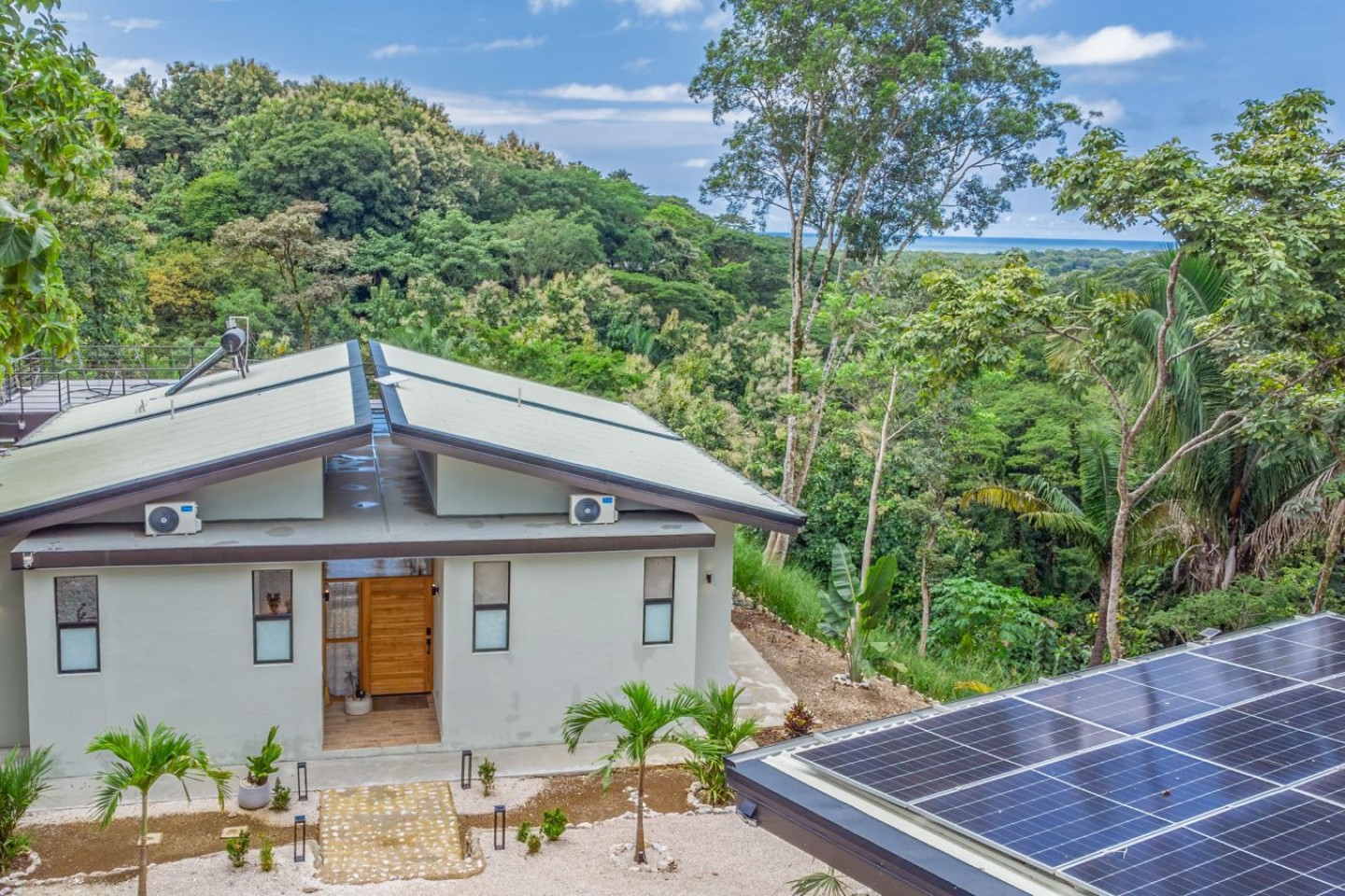 With an expansive rooftop deck, custom locally made furniture, a covered poolside lounge complete with outdoor kitchen, and a stunning infinity pool designed for breathtaking views, this newly built two-bedroom retreat is undeniably Costa Rica. And with solar panels powering the entire home, you can rest easy knowing your private oasis is fully off-grid.