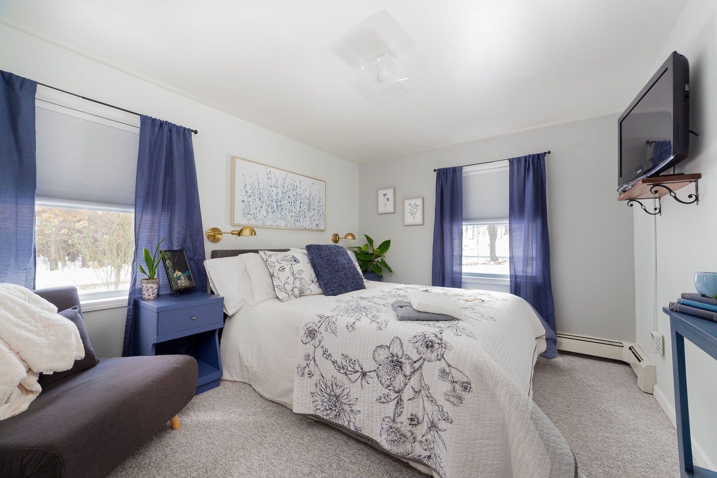 You will sleep sweetly in the spacious bedroom with a comfortable queen bed and luxurious linens. The bedroom is also equipped with blackout blinds, Apple TV, and a full-size closet. There is a comfortable chair that can fold out into a single bed for an additional guest. The chair can stay in the bedroom or easily be moved to the common space if desired.