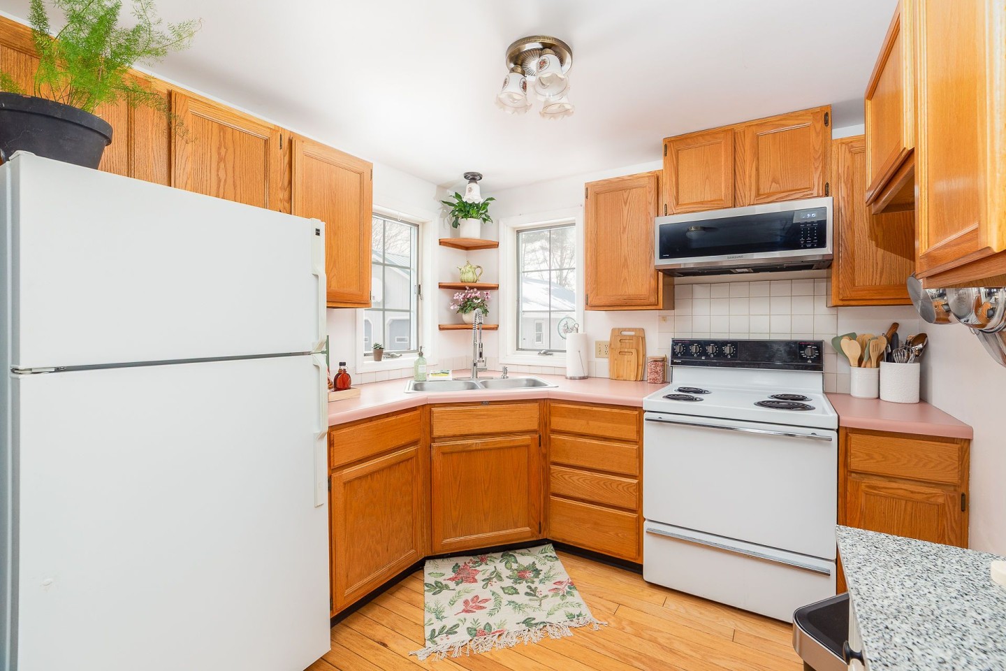 The bright kitchen has lots of cupboard space, top-quality pots, pans and knives for all your cooking needs. A variety of oils, vinegars, and spices are provided, along with dishes, utensils, glassware, cooking tools, kettle, waffle maker, toaster, microwave. Full-size stove with oven, full-size fridge with freezer. Coffee station with coffee, sugar, creamer, and a variety of teas.