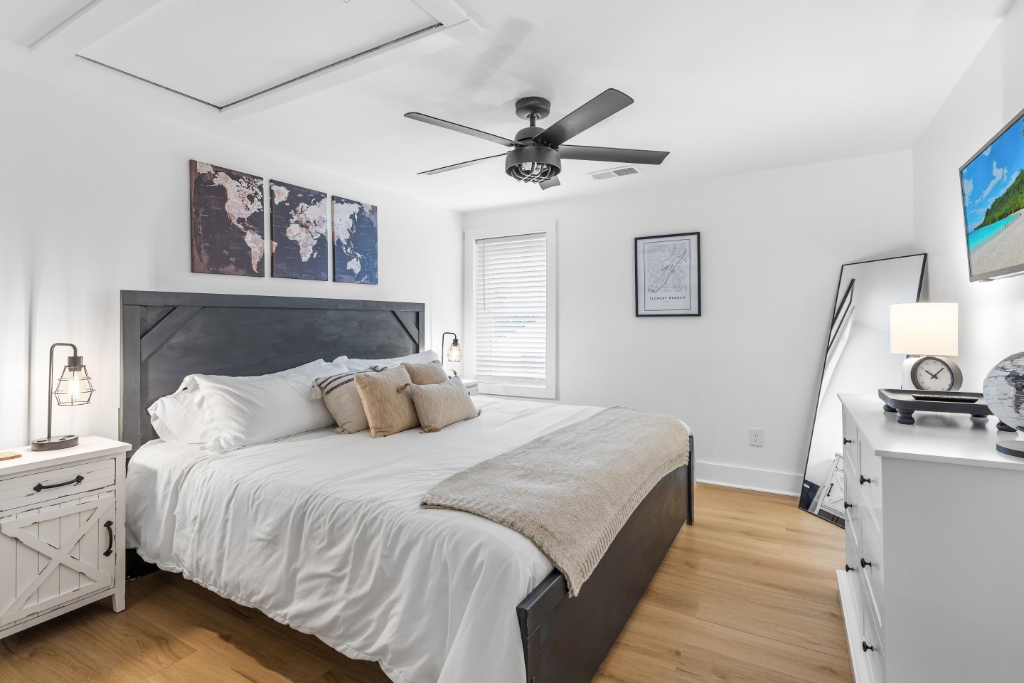 Newly remodeled 2 bdr /2 ba cottage conveniently located in Downtown Flowery Branch. Steps away from the local restaurants, farmers market, shops, and Lake Lanier. Close proximity to all major attractions in the area including Chateau Elan, Lanier Islands, Road Atlanta, and more. Whether you’re here for work or play, The Peach Pad will be your home away from home! Please message us if you have any questions. Please note we do not allow any pets at all. We hope we can host you!