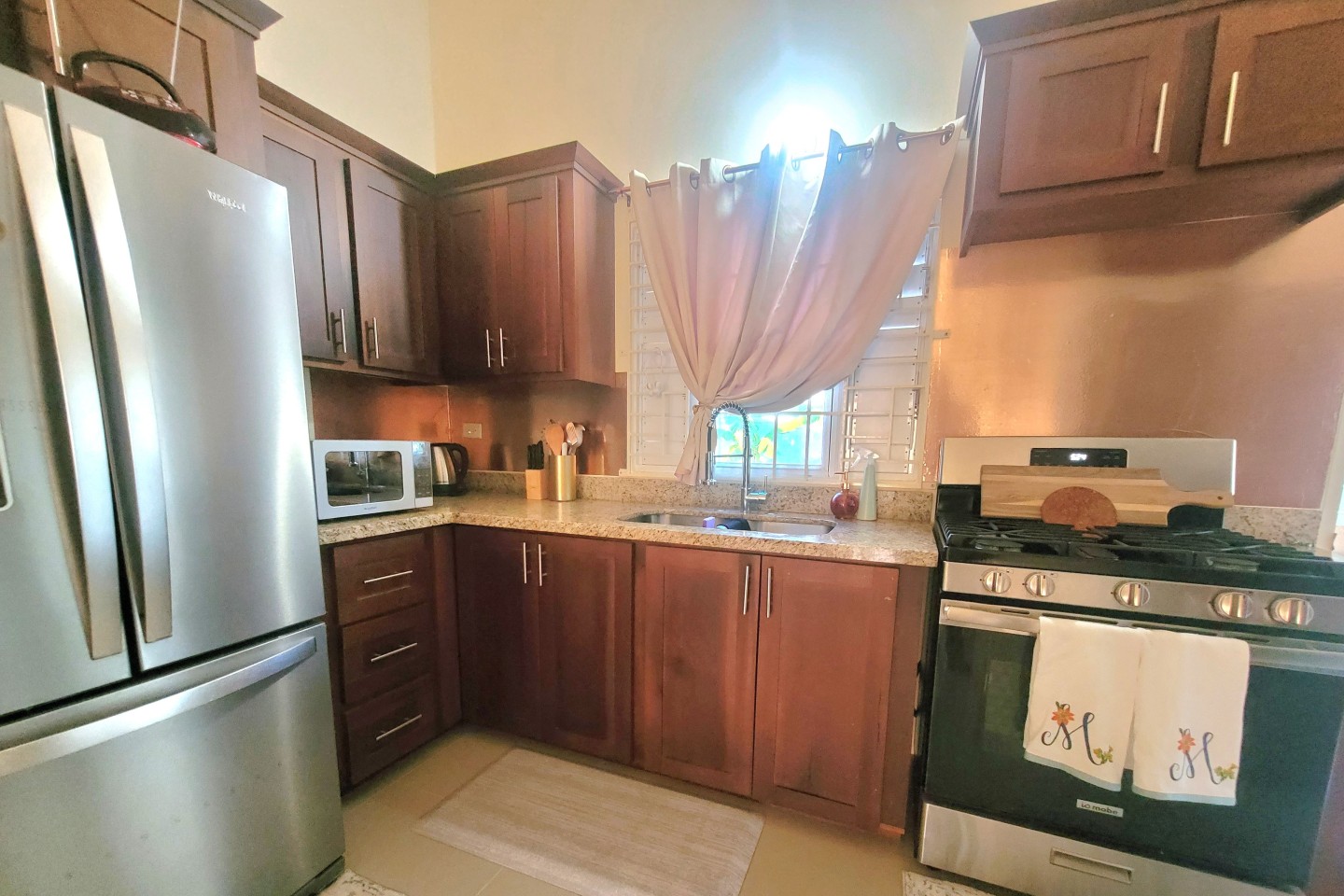 Clean 2 bedroom 2 bath house in gated community. Free Wifi, solar powered whole house heated water are some the features of this home. Cool down with modern remote controlled ceiling fans or air conditioning throughout. Choose between the Jammin Room which boosts locally handcrafted furniture or the Light Room with minimalist, uncluttered storage. Self check-in,5-7 minutes stroll to 1 of 2 community pools. Enjoy the services of a very experienced local JW tour operator; catering by Sister Joy.