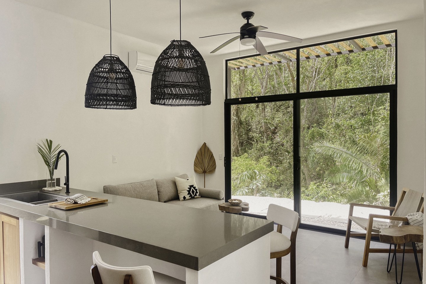 Brand-new Casa Botánica is the ideal romantic jungle escape. Private pool, mirrored living space, outdoor kitchen and lush views all come together to provide a perfectly serene getaway. Nestled in the jungle between Nosara and Sámara, you’re never far from world-class beaches. Queen bed, AC, Starlink wifi, and much more to make your stay as sweet as possible, Casa Botánica is your special slice of Costa Rica.